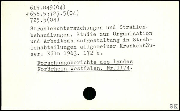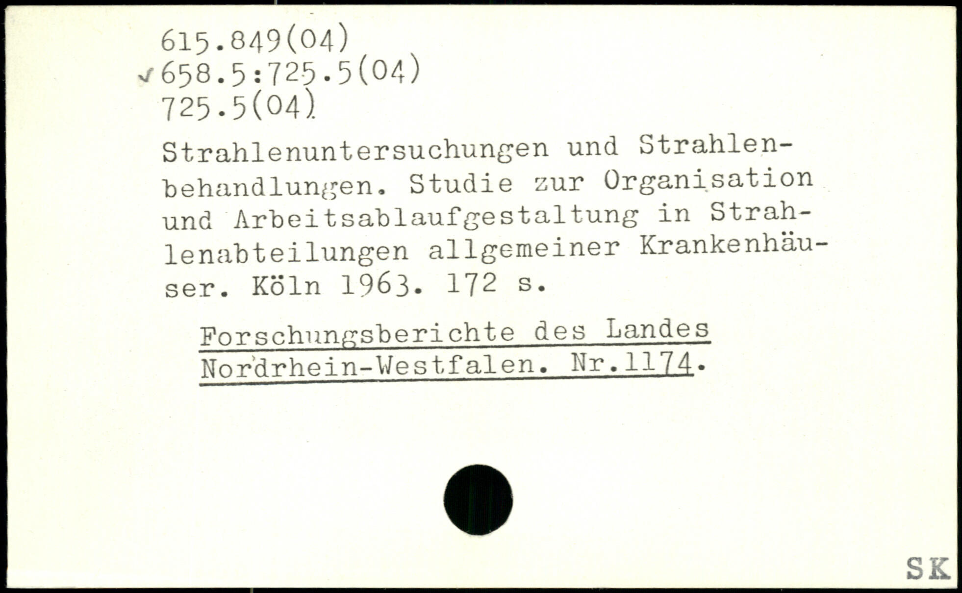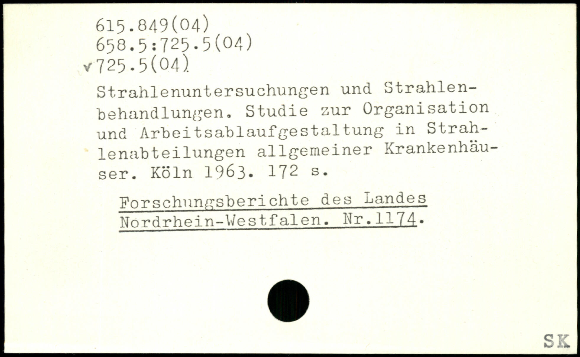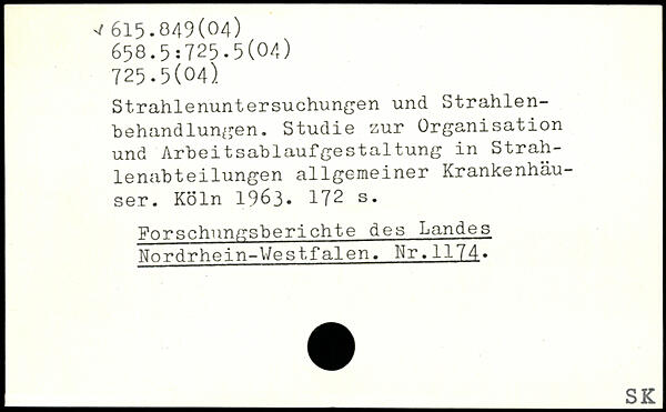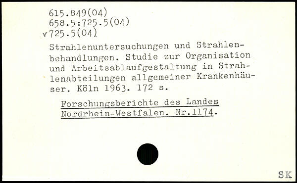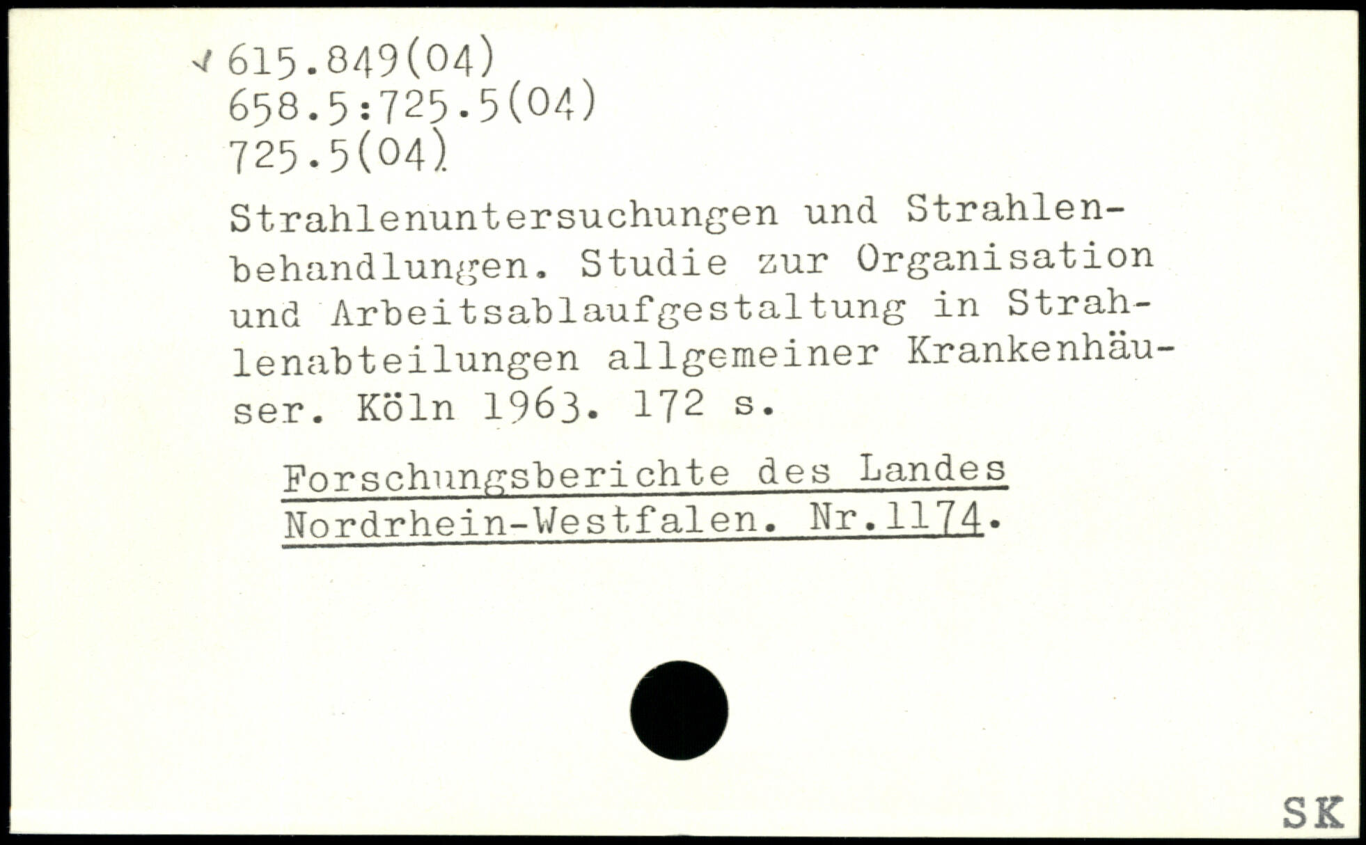 Strahlenuntersuchungen und Strahlenbehandlungen. Studie zur Organisation und Arbeitsablaufgestaltung in Strahlenabteilungen allgemeiner Krankenhäuser.