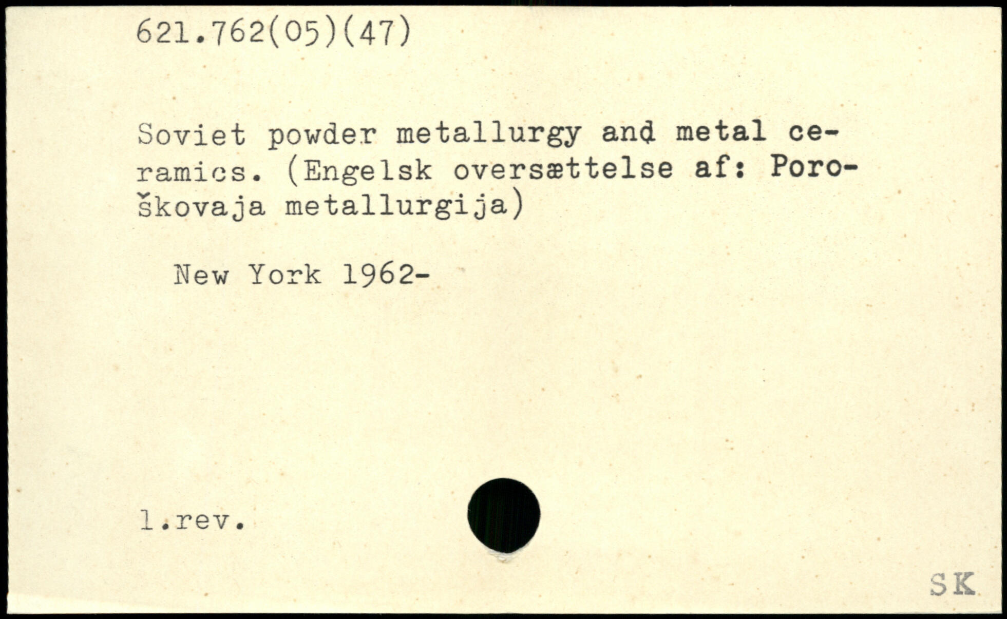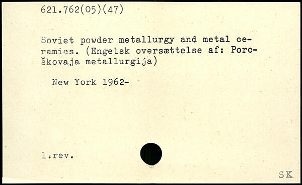 Soviet powder metallurgy and metal ceramics. (Engelsk oversættelse afi Poro-skovaja metallurgija)