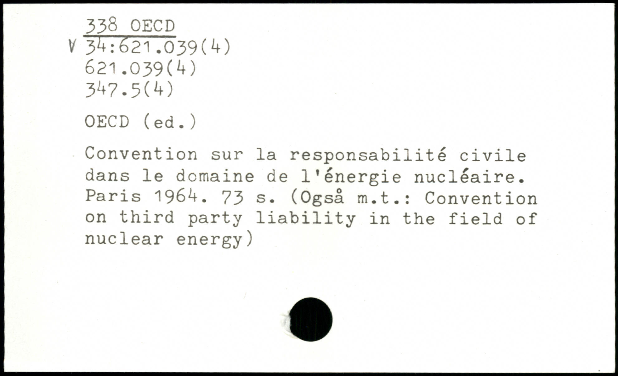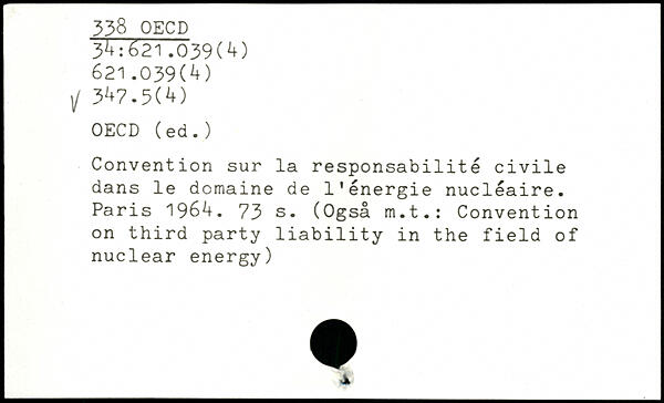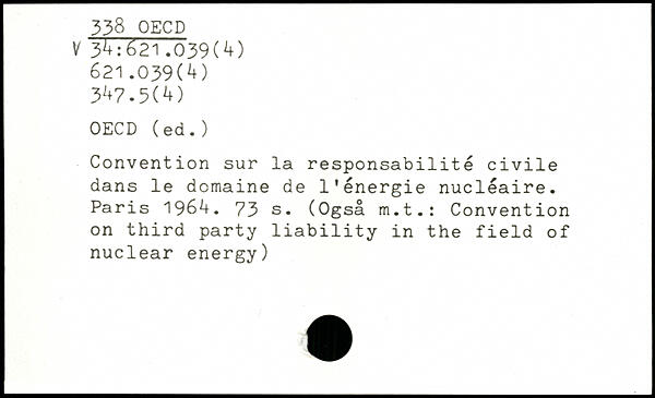 Convention sur la responsabilité civile dans le domaine de l'énergie nucléaire. Paris 196.+.