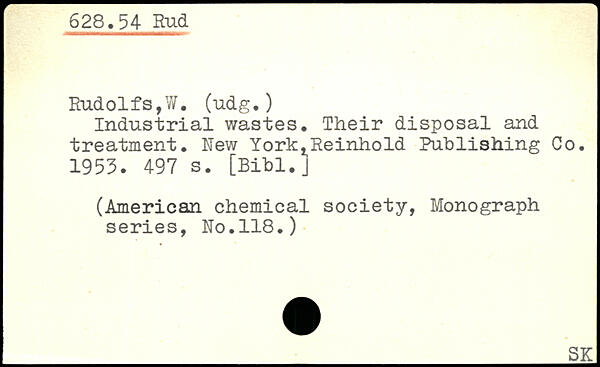 Industrial wastes. Their disposal and treatment. New York,Reinhold Publishing Co. 1953.