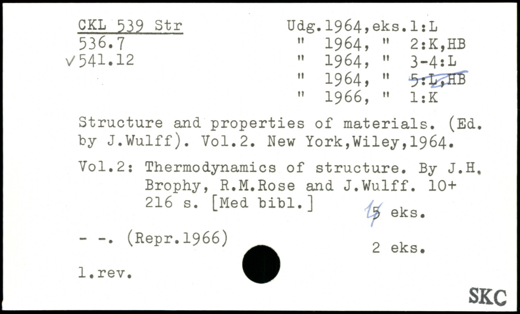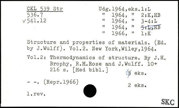" 1964, " -ïrVjïïS " 1966, " IîK Structure and properties of materials. (Ed. by J.Wulff).