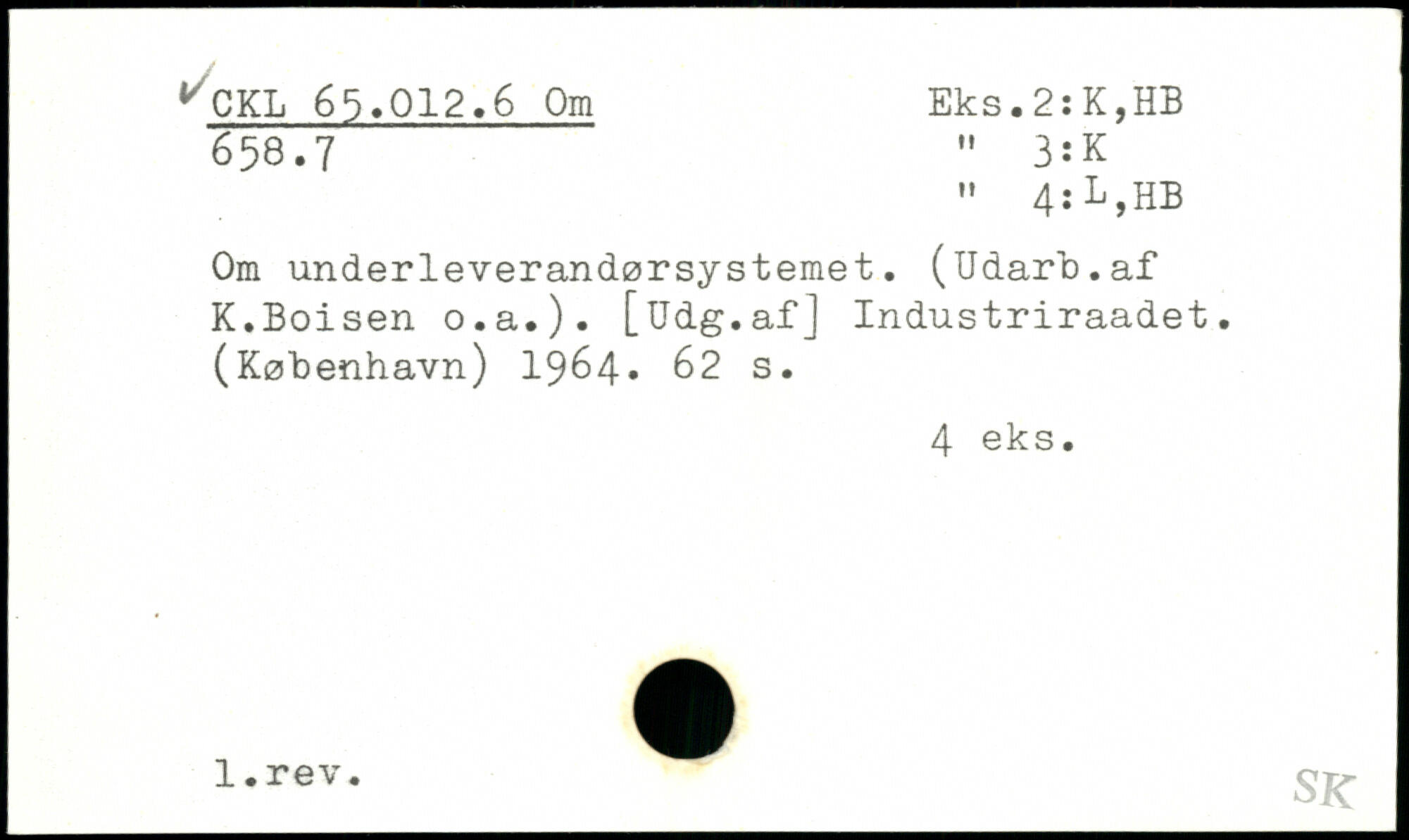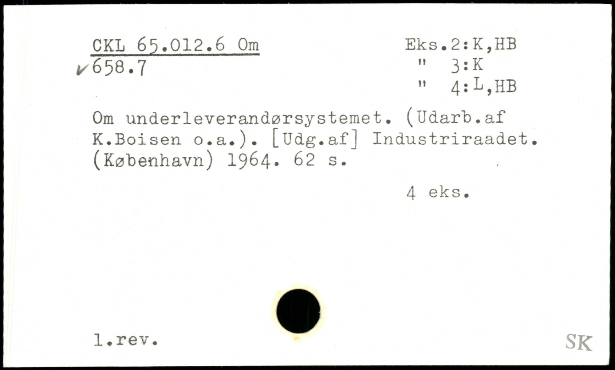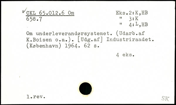Om underleverandørsystemet. (Udarb.af K.Boisen o.a.). [Udg.af] Industriraadet. (København) 1964
