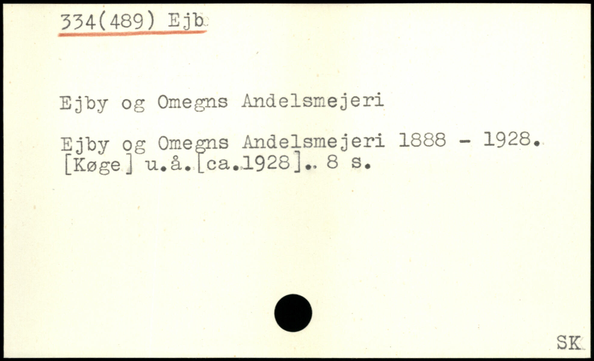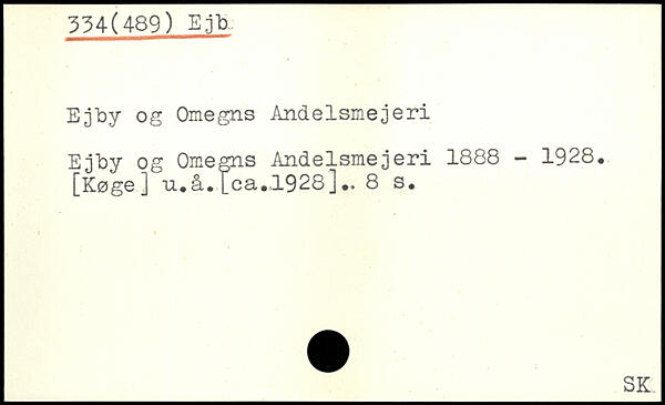 Ejby og Omegns Andelsmejeri Ejby og Omegns Andelsmejeri 1888 - 1928, [Køge] u.å.[ca.JL928]..