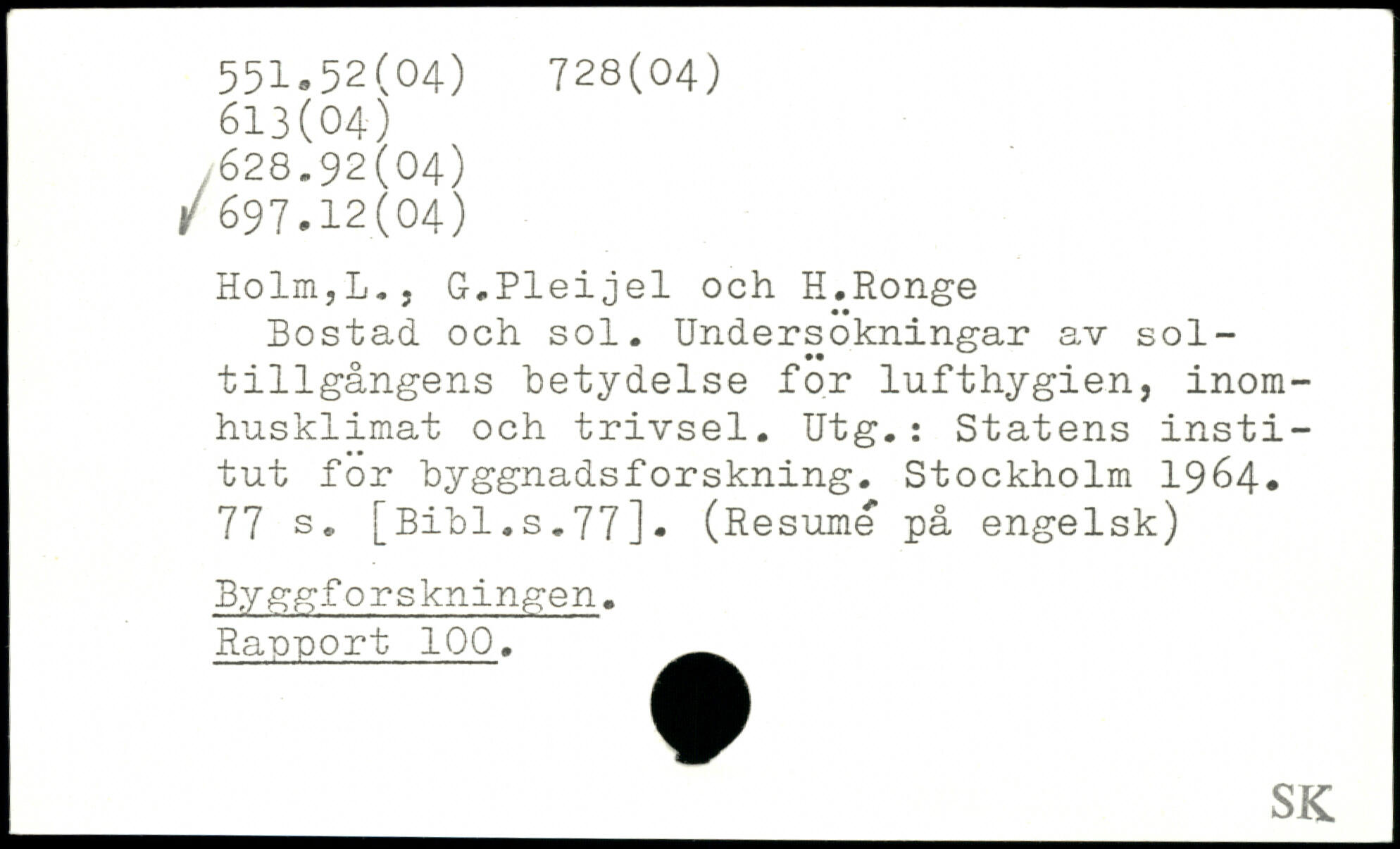 Bostad och sol. Undersökningar av sol-tillgångens betydelse for lufthygien, inom-husklimat och trivsel. Utg.: Statens institut for byggnadsforskning.