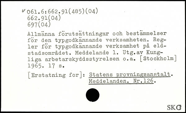 Allmänna förut sättningar och bestämmelser för den typgodkännande verksamheten. Regler för typgodkännande verksamhet på eldst adsområdet. Meddelande 1. Utg.av Kungliga arbetarskyddsstyrelsen o.a.