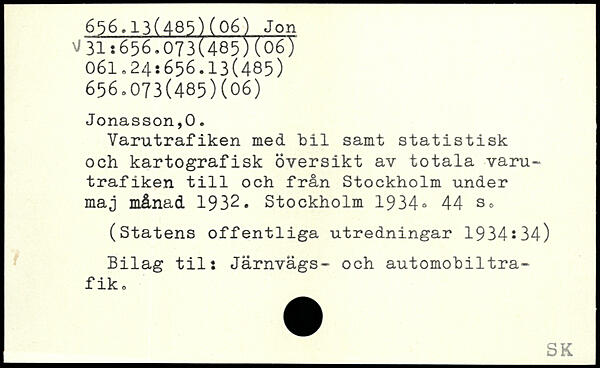 Varutrafiken med bil samt statistisk och kartografisk översikt av totala varutrafiken till och från Stockholm under maj månad 1932.