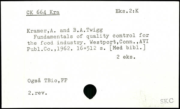 Fundamentals of quality control for the food industry. Westport,Conn.,AVI Publ.Co.,1962.
