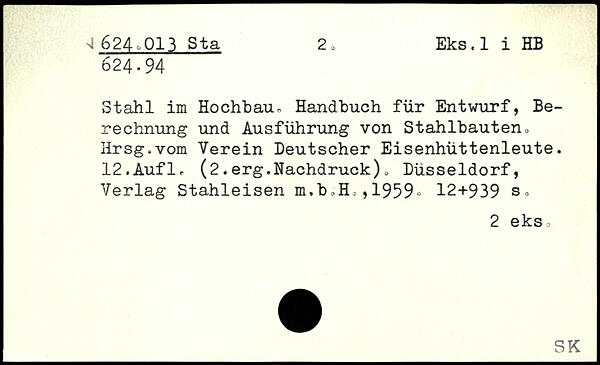 Stahl im Hochbau. Handbuch für Entwurf, Berechnung und Ausführung von Stahlbauten. Hrsg,vom Verein Deutscher Eisenhüttenleute.
