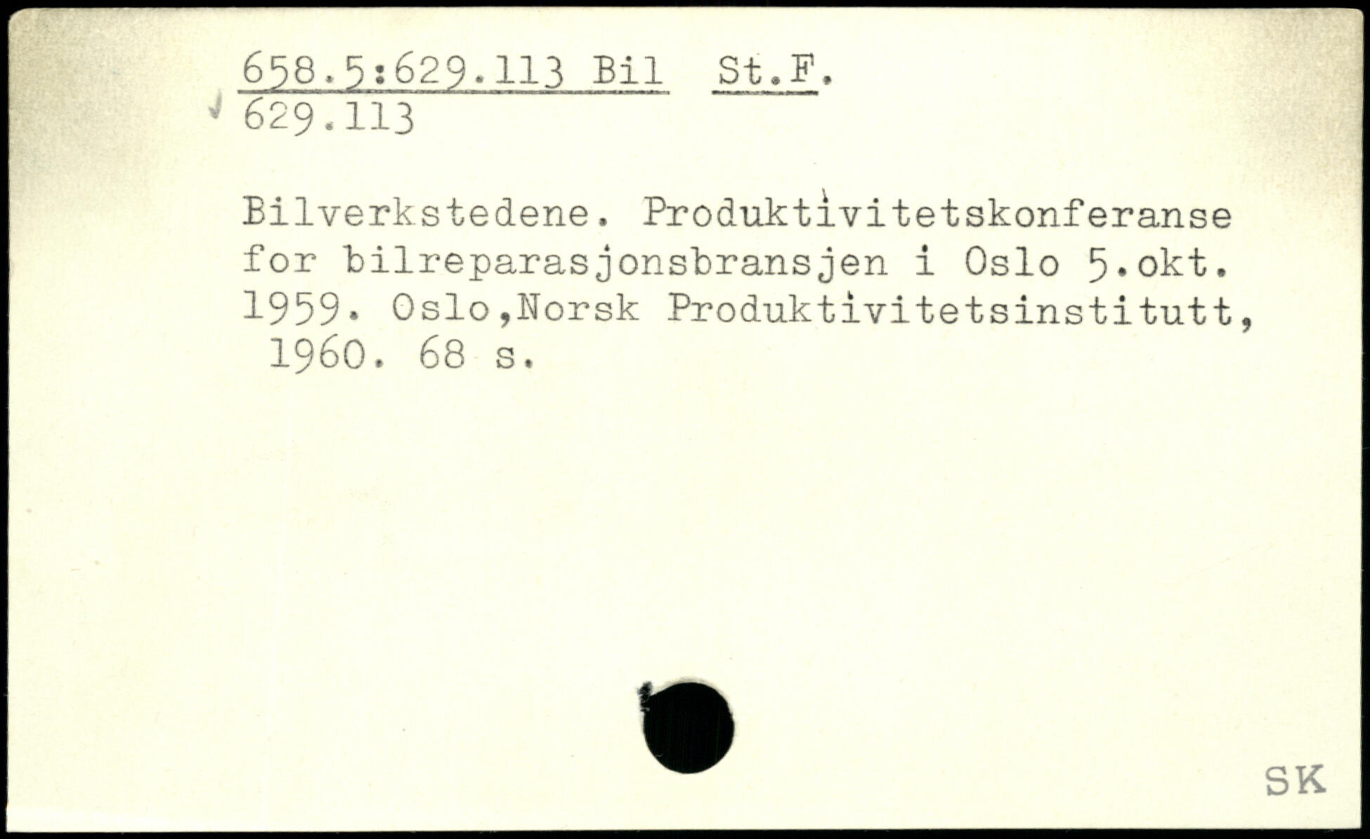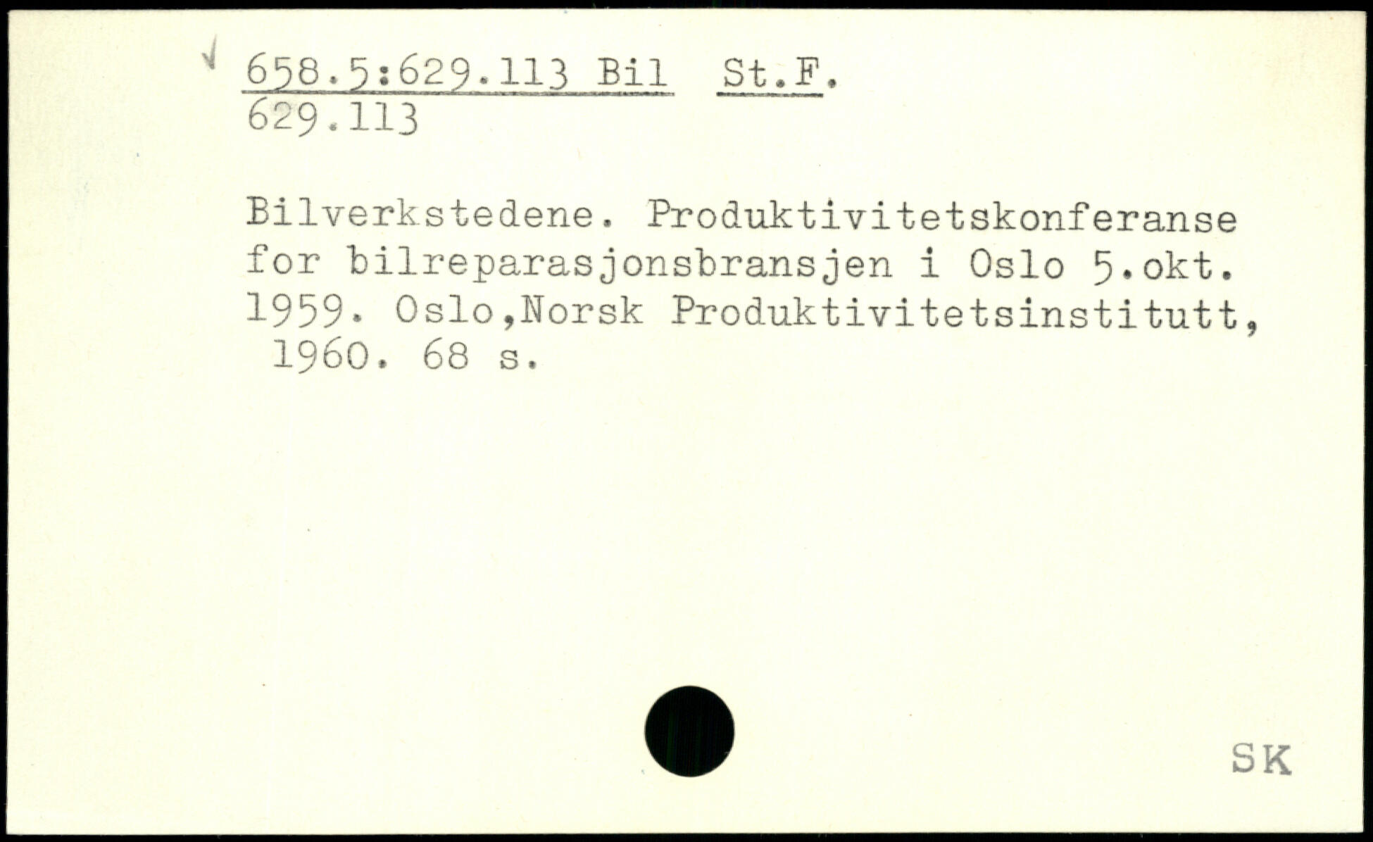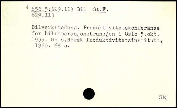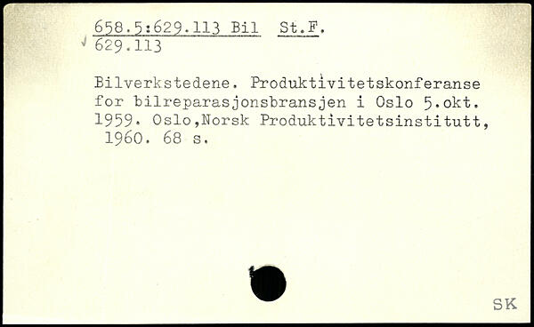 Bilverkstedene. Produktivitetskonferanse for bilreparasjonsbransjen i Oslo 5,okt. 1959.