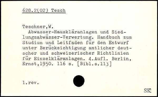 Abwasser-Hauskläranlagen und Sied-lungsabwässer-Verwertung. Handbuch zum Studium und Leitfaden für den Entwurf unter Berücksichtigung amtlicher deutscher und schweizerischer Richtlinien für Einzelklaranlagen.