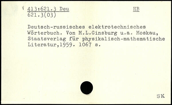 Deutsch-russisches elektrotechnisches Wörterbuch. Von M0L.Ginsburg u,a