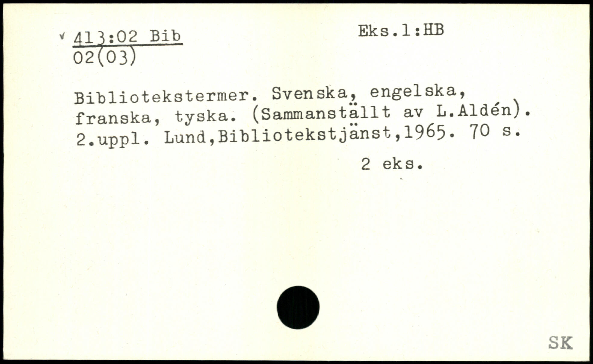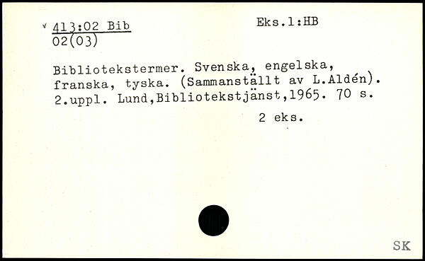 Bibliotekstermer. Svenska, engelska, ^ franska, tyska. (Sammanstallt av L.Aidén).