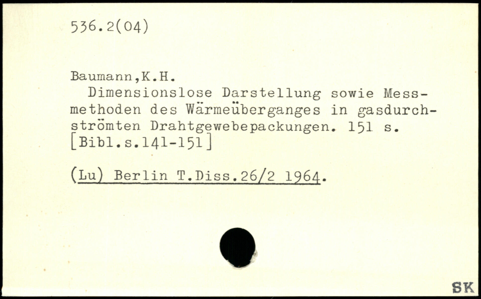 Dimensionslose Darstellung sowie Messmethoden des Wärmeüberganges in gasdurch-strömten Drahtgewebepackungen.