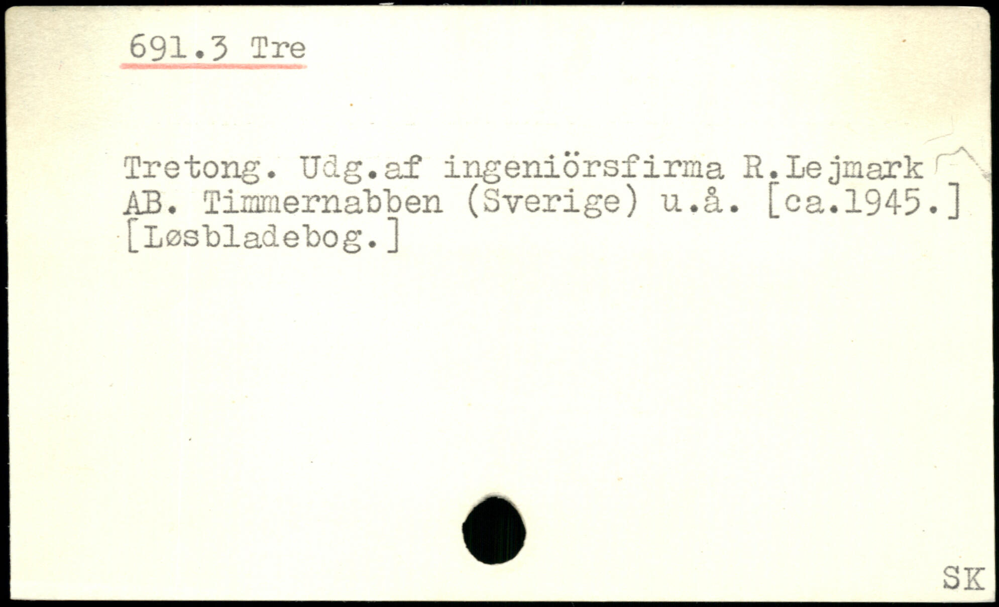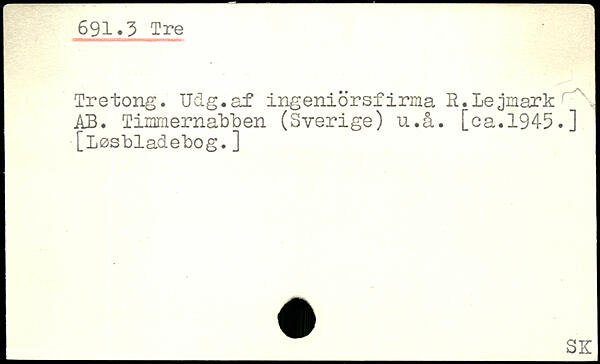 Tretong. Udg.af ingeniörsfirma R.Lejnark \ AB. Timmernabben (Sverige) u.å. [ca.1945.] [Løsbladebog.]