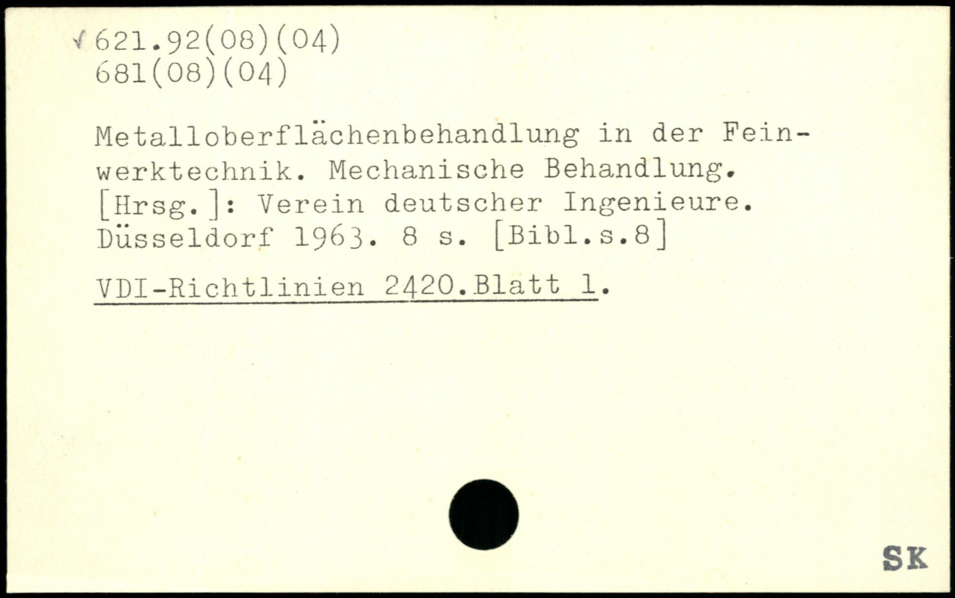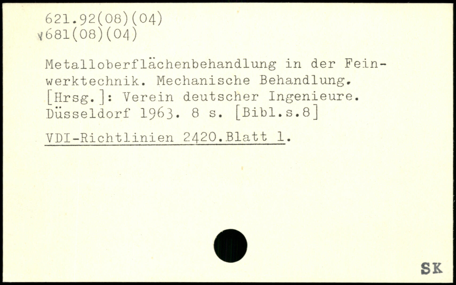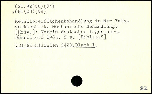Metalloberflächenbehandlung in der Feinwerktechnik. Mechanische Behandlung. [Hrsg.]: Verein deutscher Ingenieure. Düsseldorf 1963