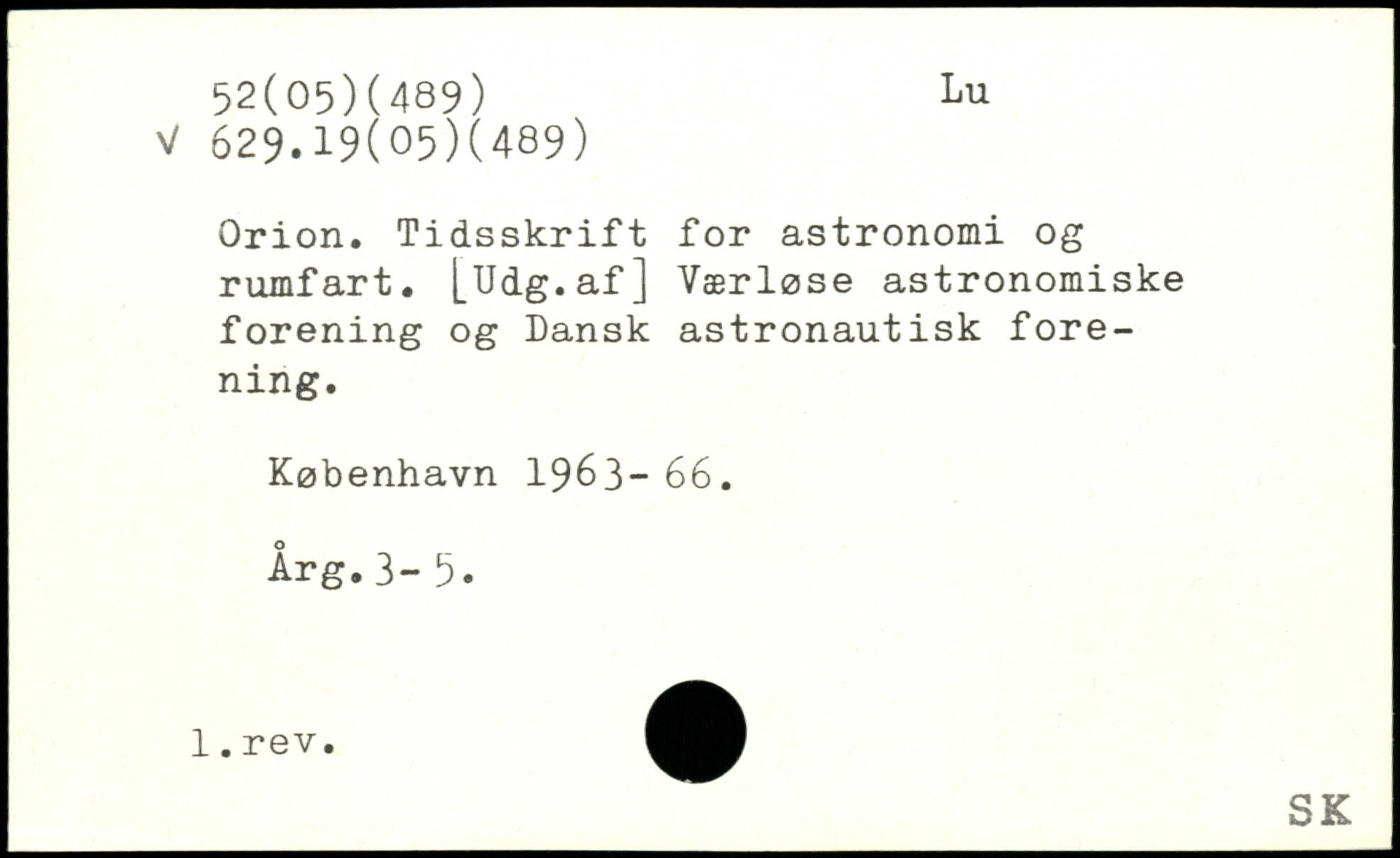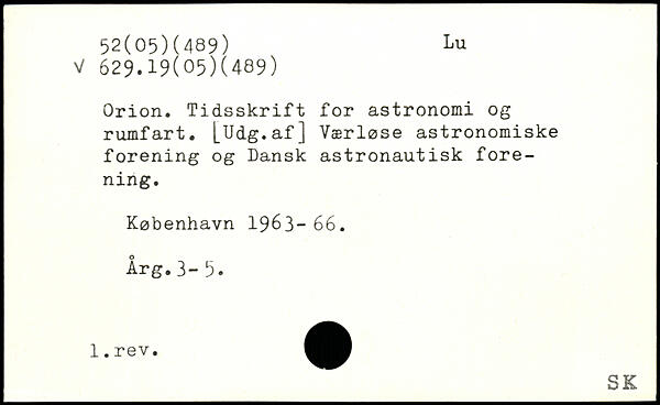 Orion. Tidsskrift for astronomi og rumfart. [Udg.af] Værløse astronomiske forening og Dansk astronautisk forening.