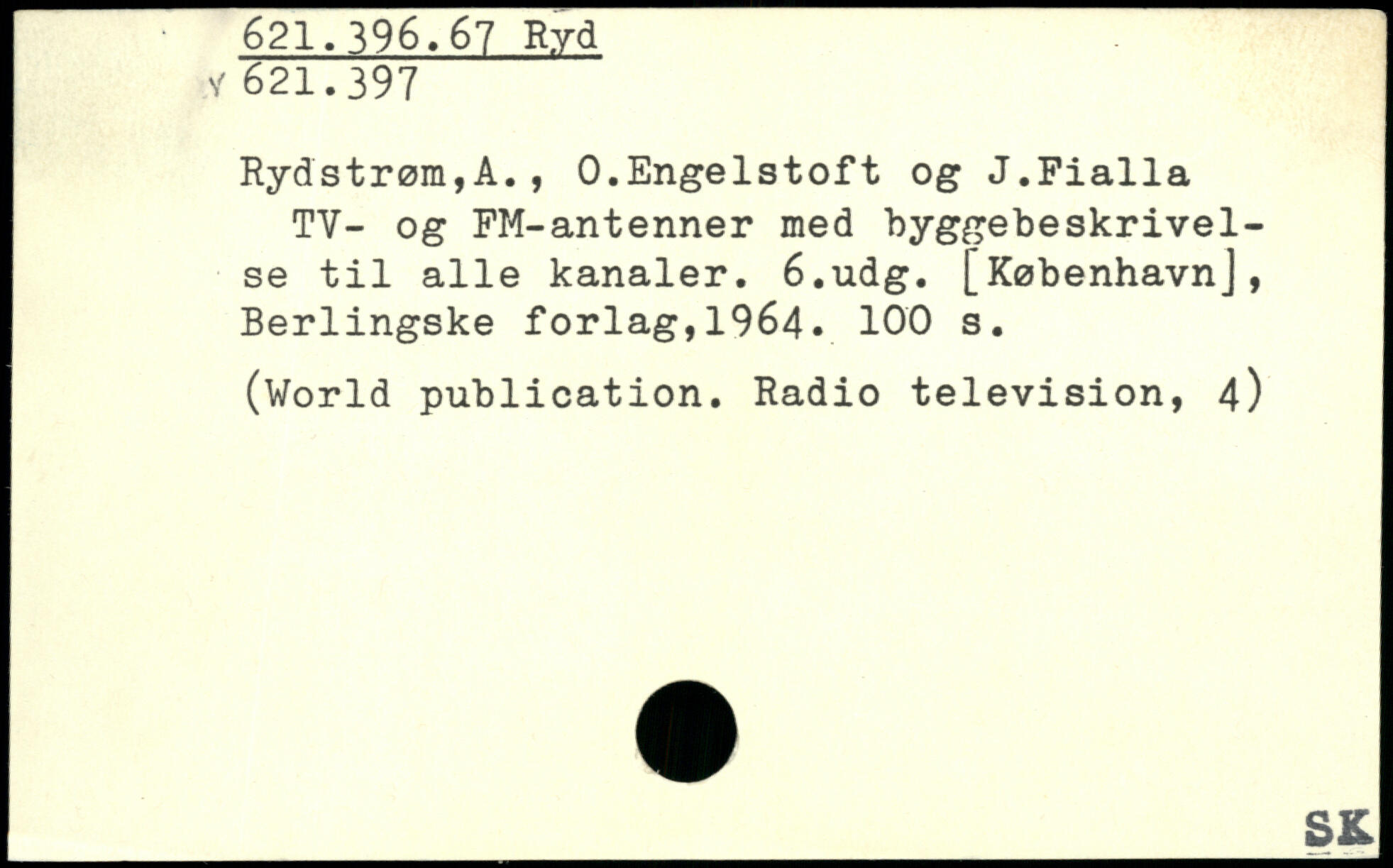 Rydstrøm,A., 0.Engelstoft og J.Fialla TY- og FM-antenner med byggebeskrivel-se til alle kanaler. 6,udg. [København], Berlingske forlag,1964.