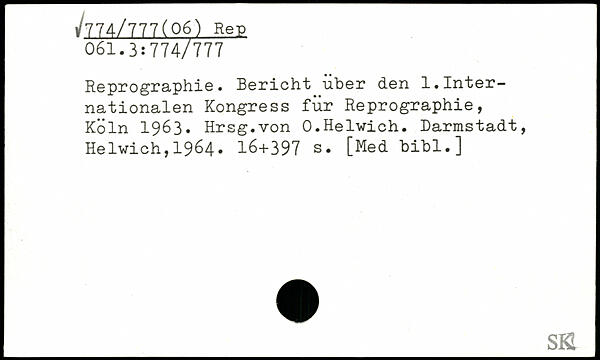 Reprographie. Bericht über den 1.Internationalen Kongress für Reprographie