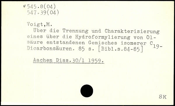 Über die Trennung und Charakterisierung eines über die Hydroformylierung von öl-saure entstandenen Gemisches isomerer C, Dicarbonsäuren.