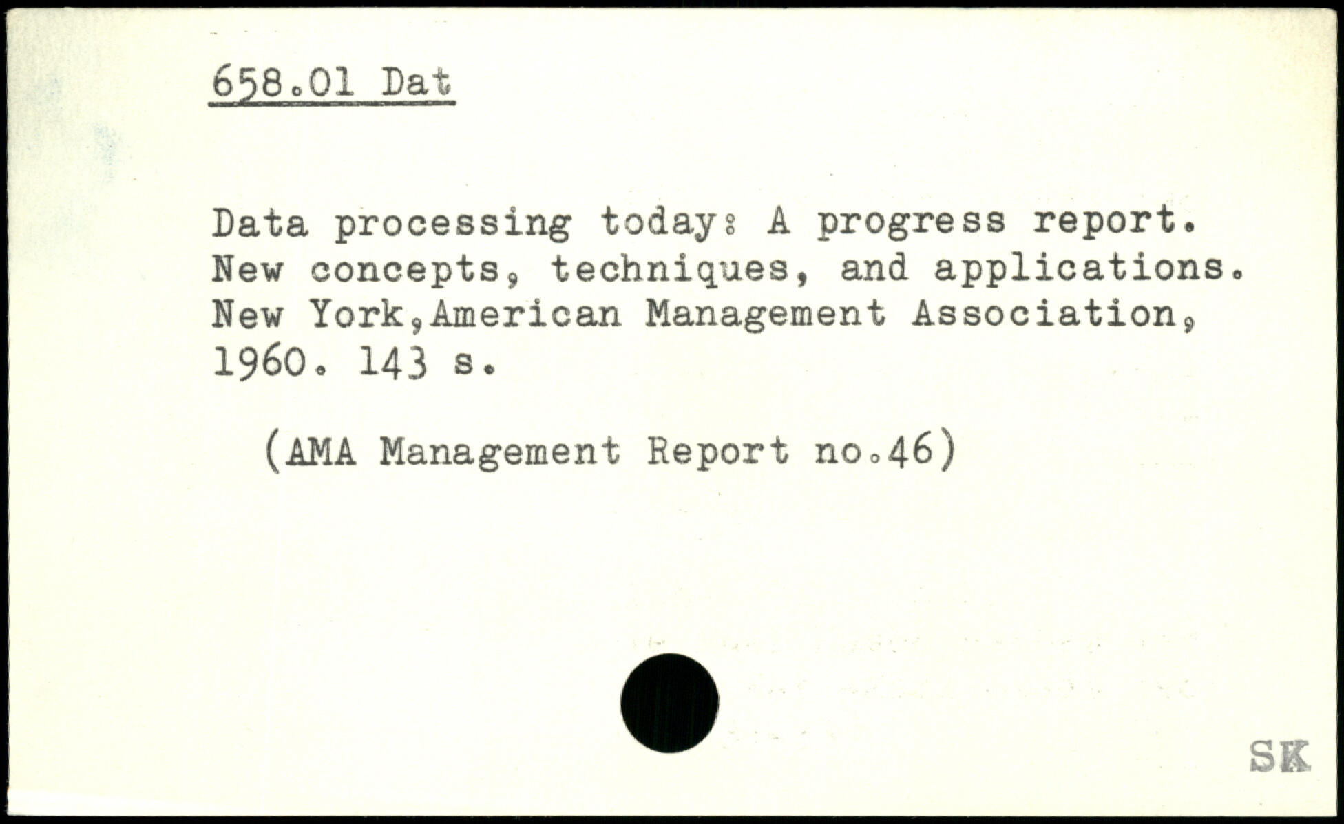 Data processing todays A progress report. New concepts, techniques, and applications.