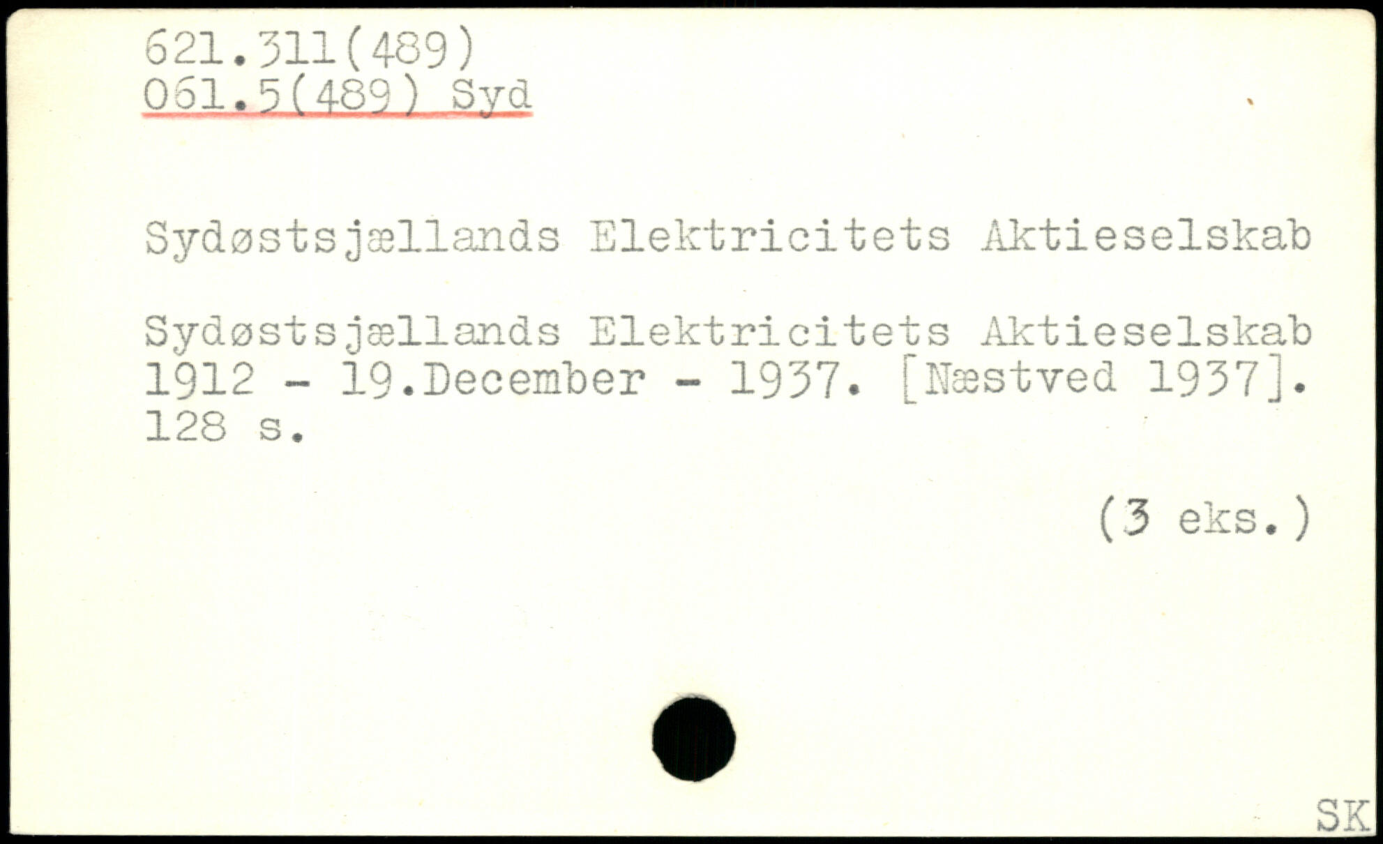 Sydøstsjællands Elektricitets Aktieselskab SydøstSjællands Elektricitets Aktieselskab 1912 - i9.December - 1937.