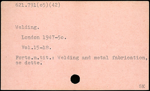 Forts.m.tit.: Welding and métal fabrication, se dette.