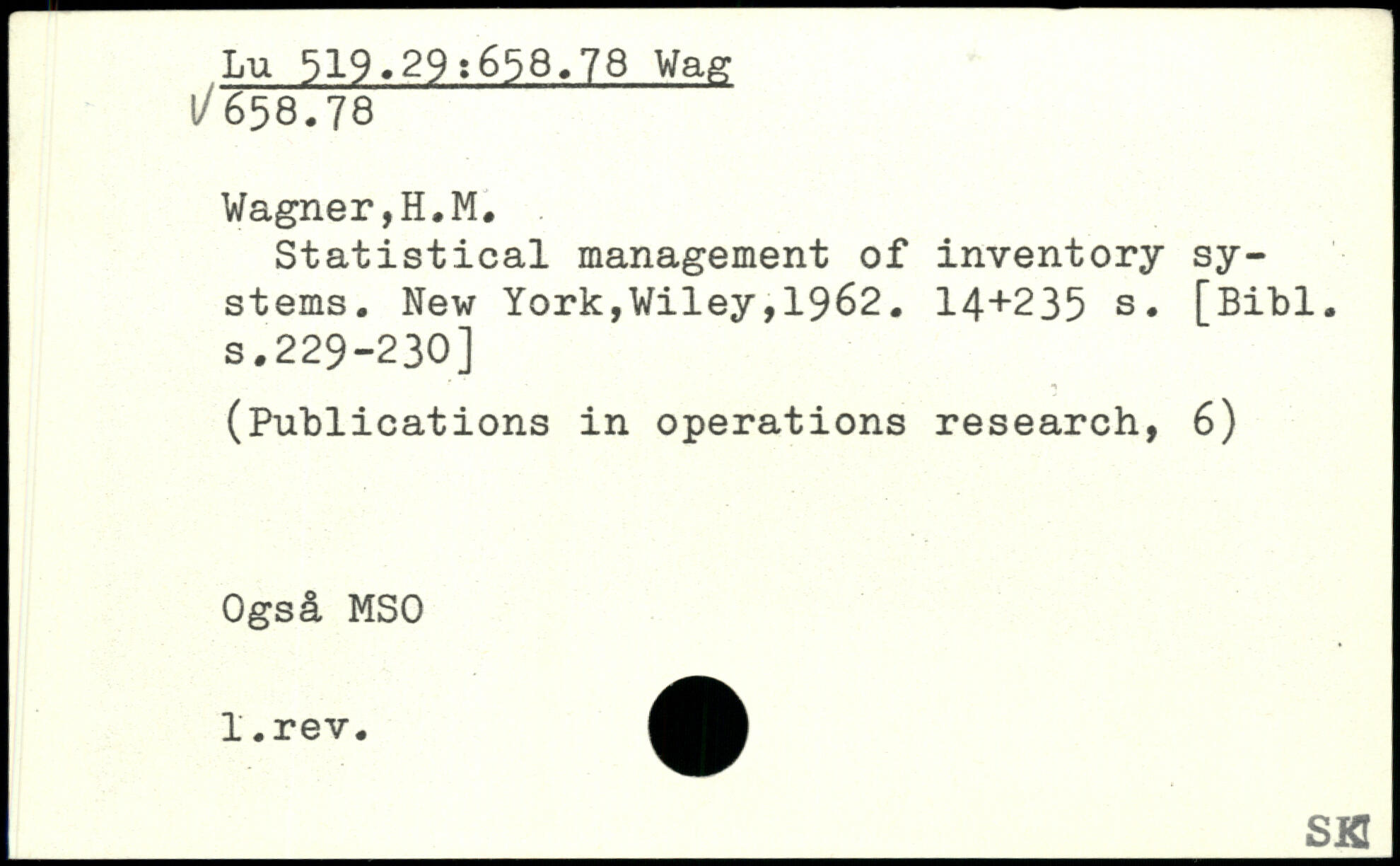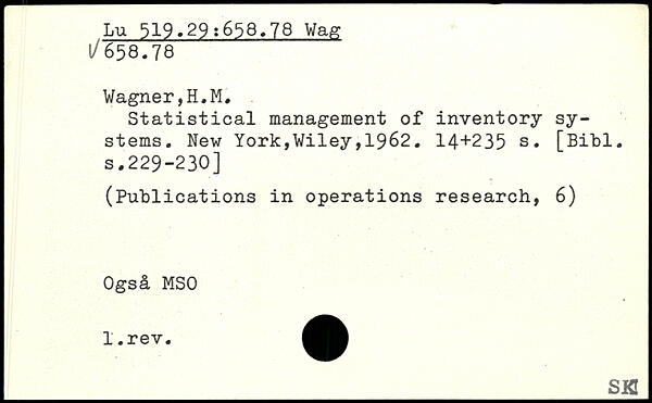 UDK: 519.29:658.78 Wag
