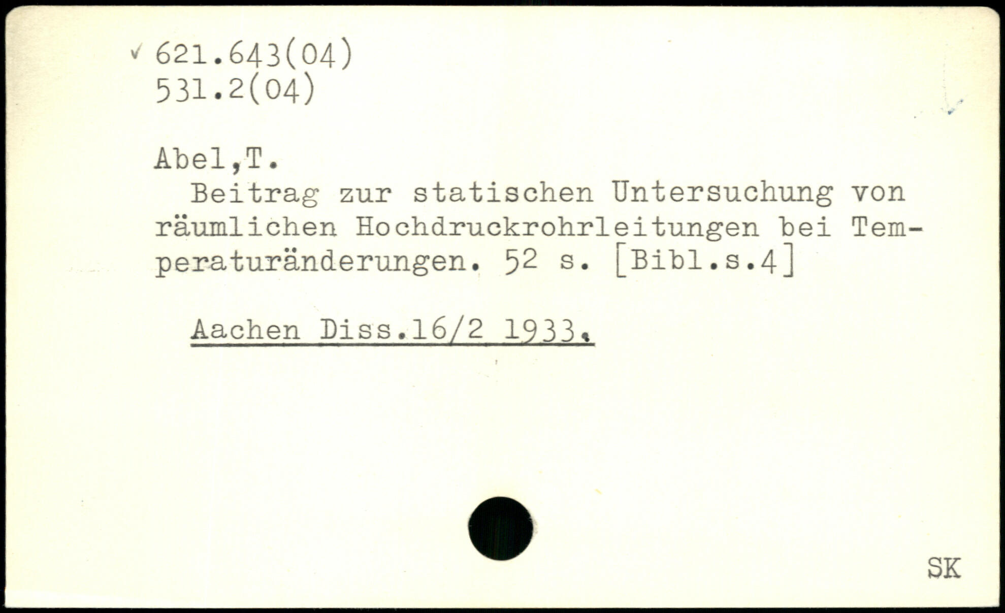 Beitrag zur statischen Untersuchung von räumlichen Hochdruckrohrleitungen bei Temperaturänderungen.