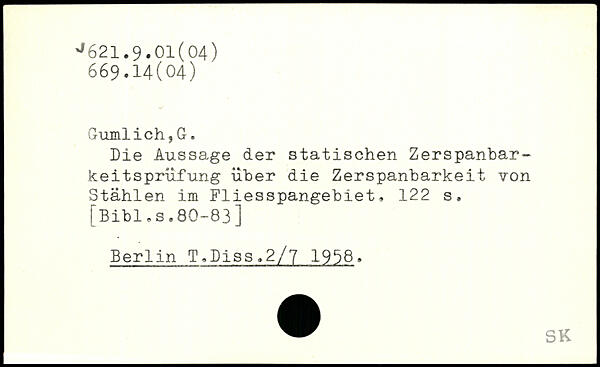 Die Aussage der statischen Zerspanbarkeitsprüfung über die Zerspanbarkeit von Stählen im Fliesspangebiet.