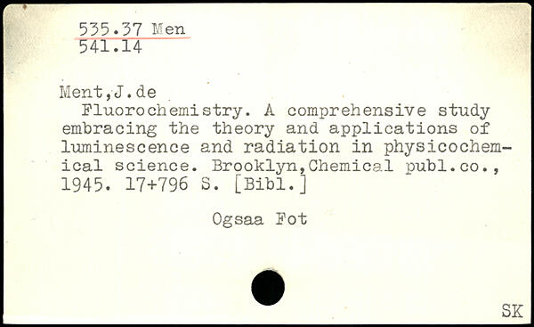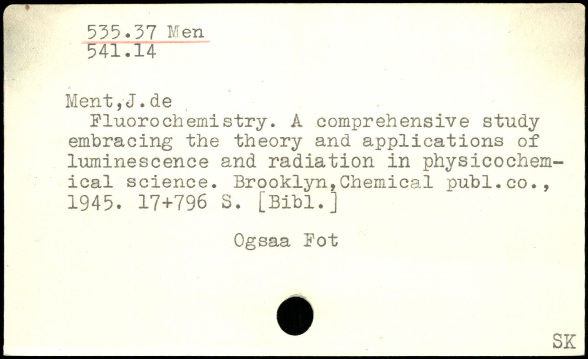 Fluorochemistry. A comprehensive study embracing the theory and applications of luminescence and radiation in physicochemical science.