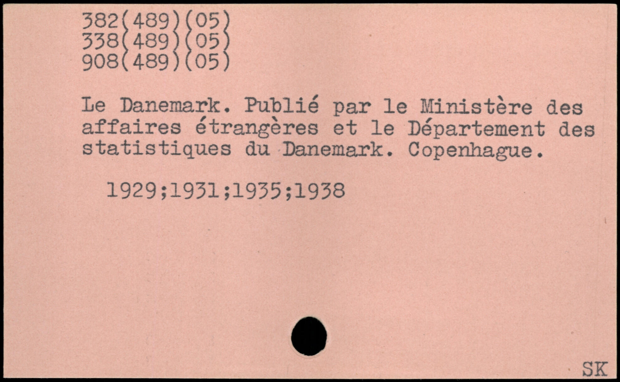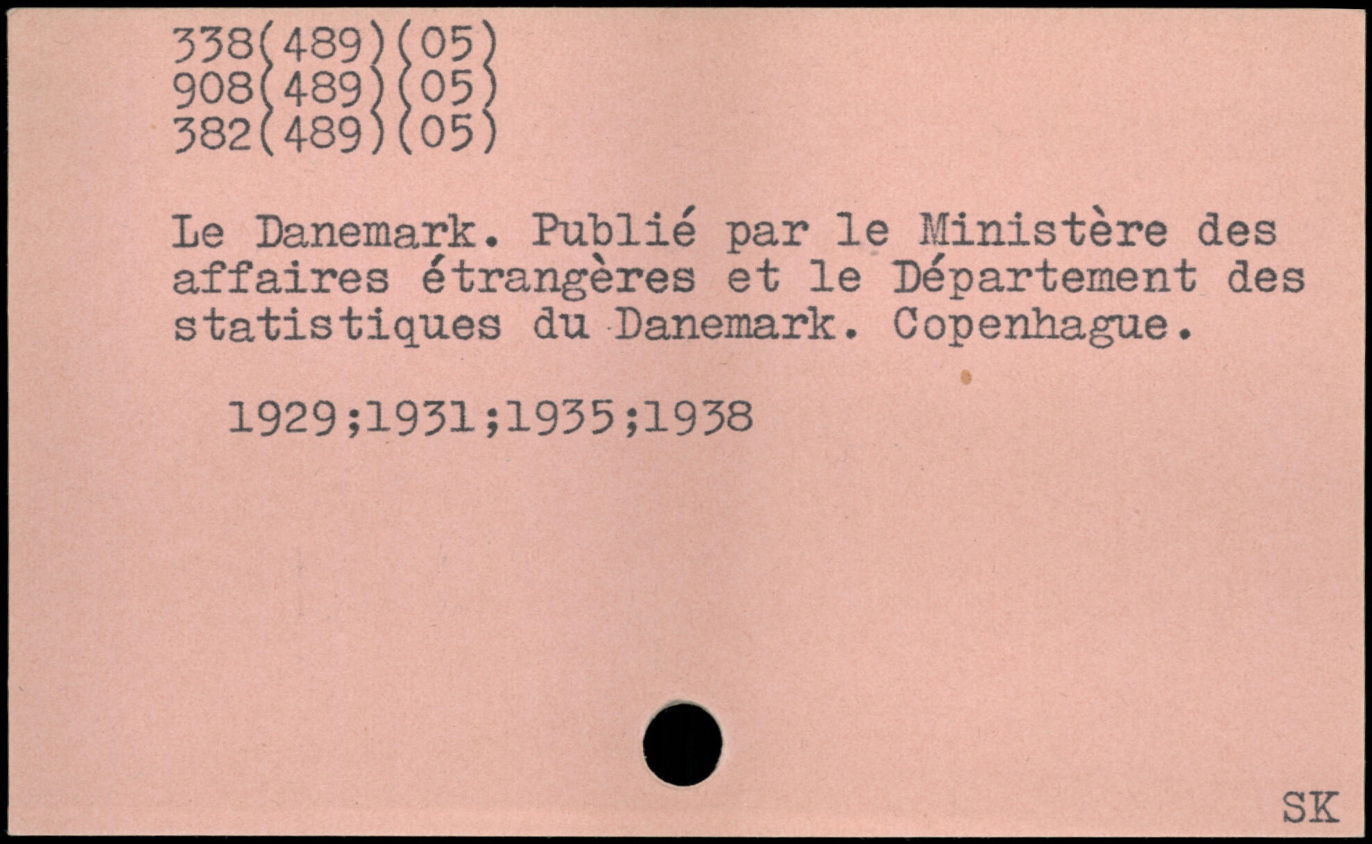Le Danemark. Publié par le Ministère des affaires étrangères et le Département des statistiques du Danemark. Copenhague. 1929; 1931;1935;1938