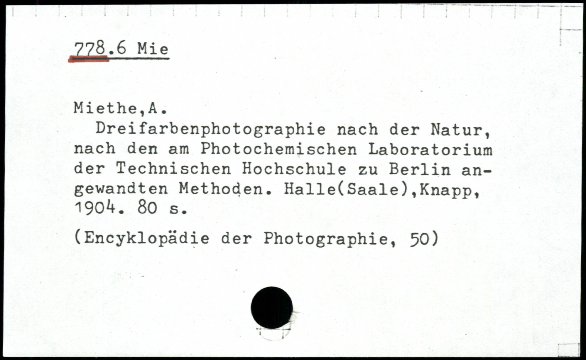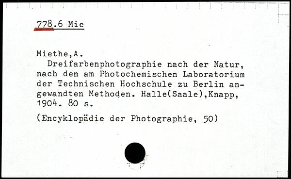 Dreifarbenphotographie nach der Natur, nach den am Photochemischen Laboratorium der Technischen Hochschule zu Berlin angewandten Methoden. Halle(Saale),Knapp, 1904.