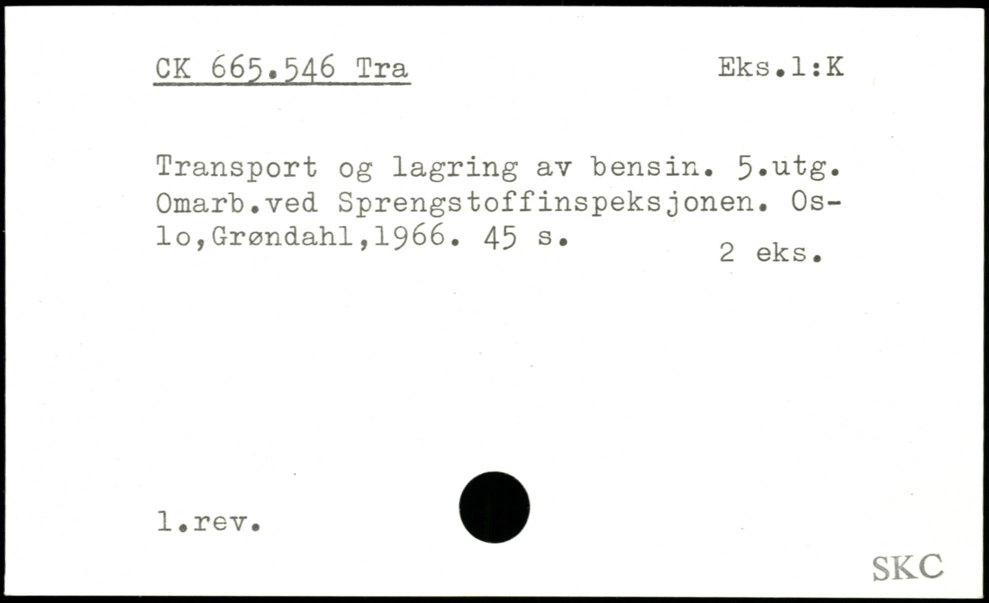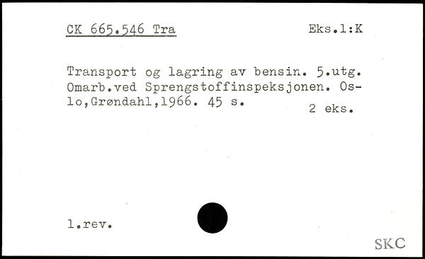 Transport og lagring av bensin. 5.utg. Omarb.ved Sprengstoffinspeksjonen.