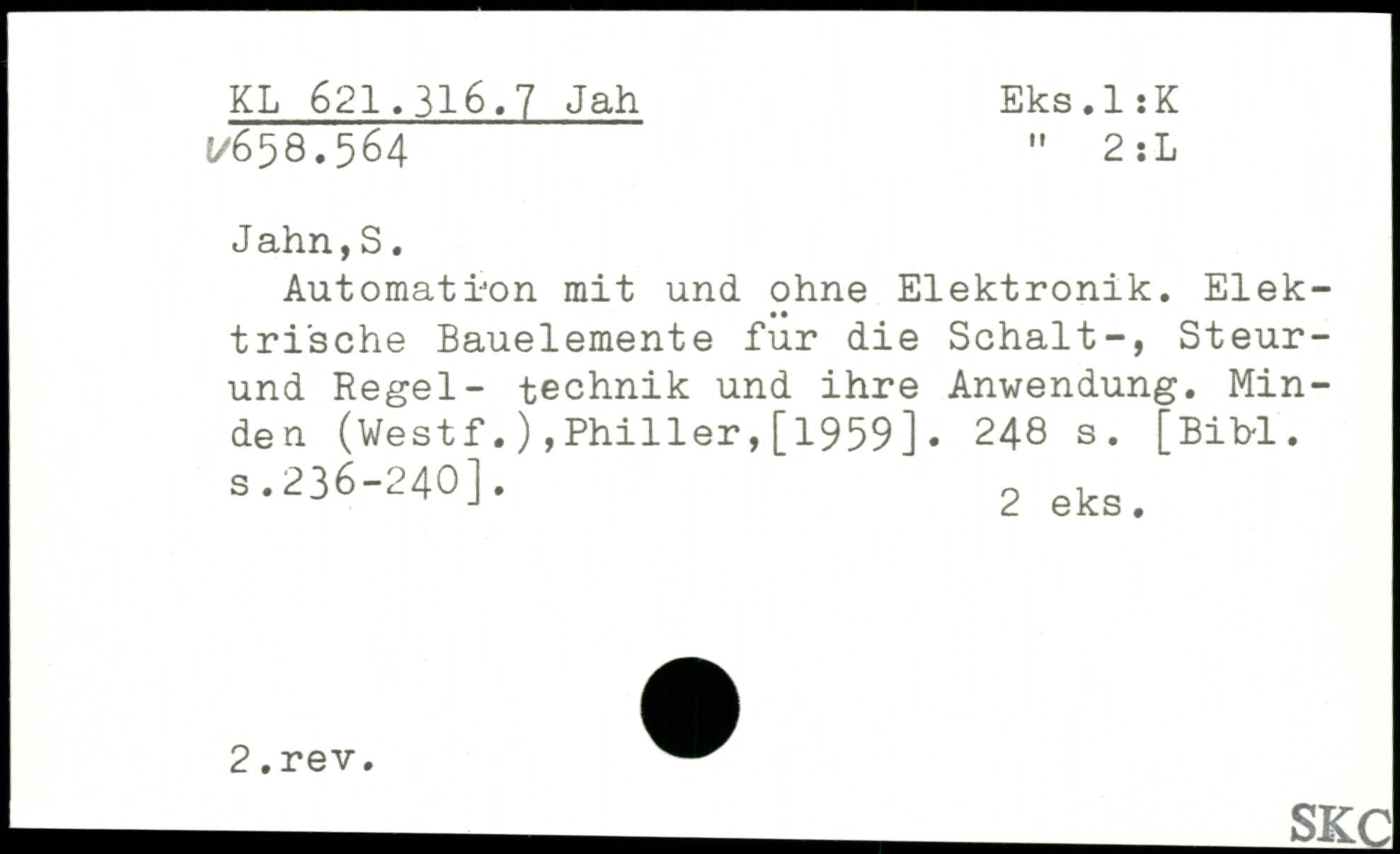 Automation mit und ohne Elektronik. Elektrische Bauelemente für die Schalt-, Steur-und Regel- technik und ihre Anwendung. Minden (Vestf.),Phi11er,[1959].