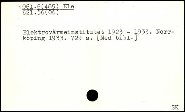 Elektrovärmeinstitutet 1923 - 1933. Horr-köping 1933.