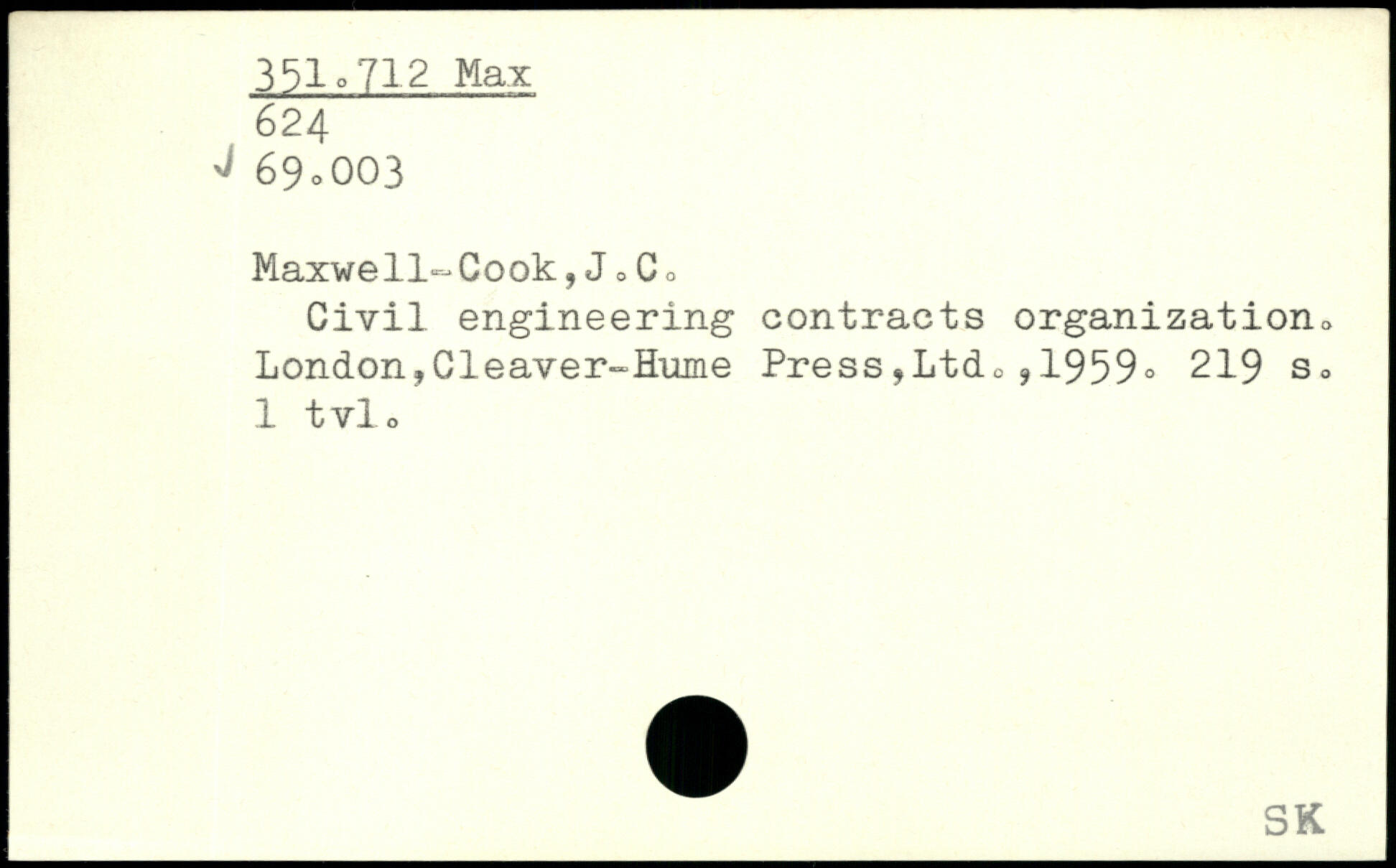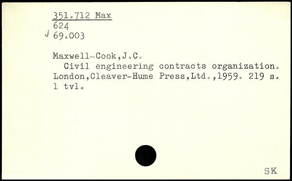 Maxwell-Cook,J,Co Civil engineering contracts organization. London,Cleaver-Hume Press,Ltd0,1959.