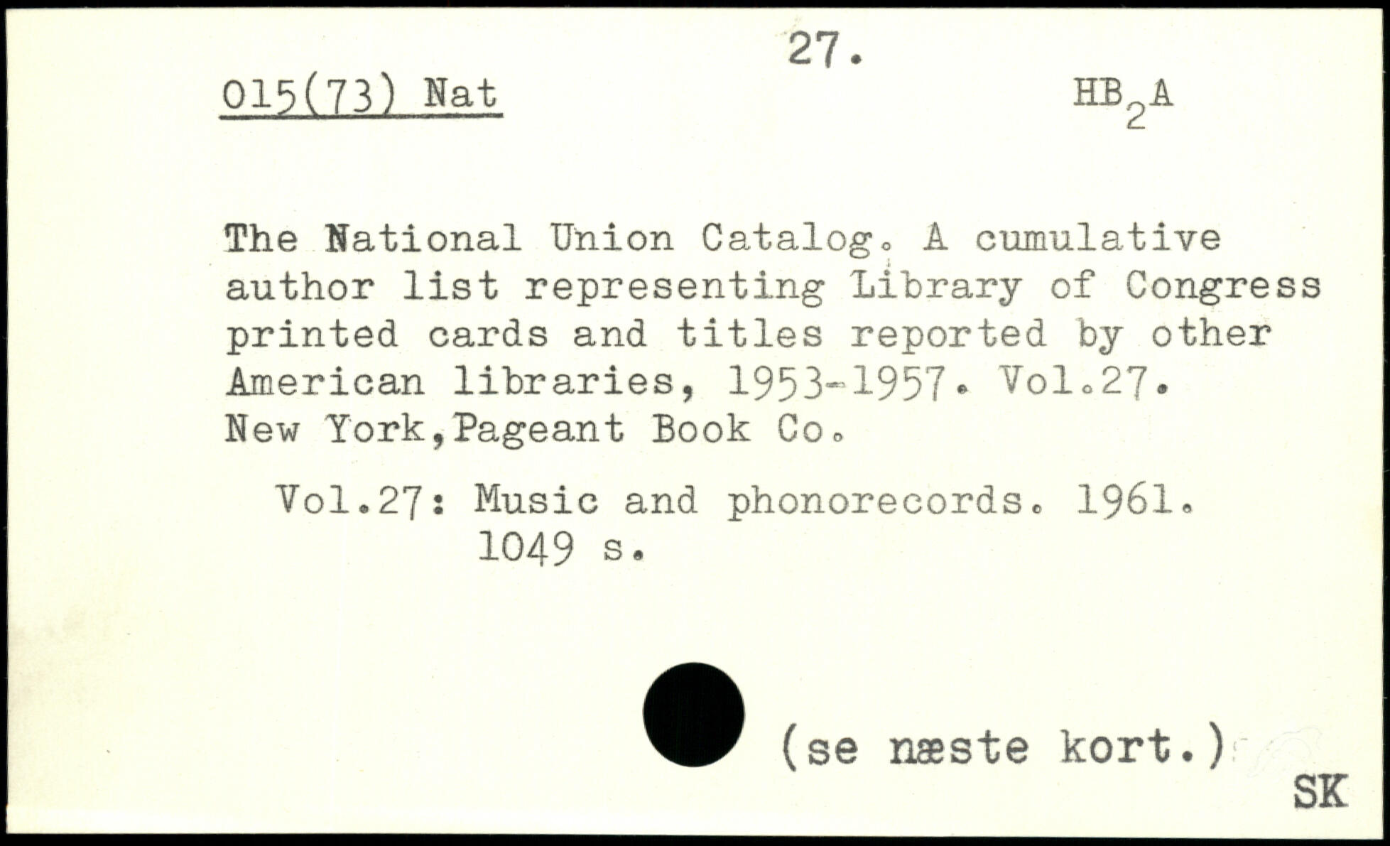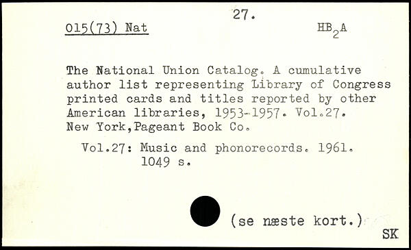 The National Union Catalogo A cumulative author list representing Library of Congress printed cards and titles reported by other American libraries, 1953-1957.