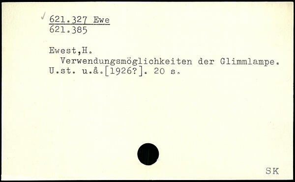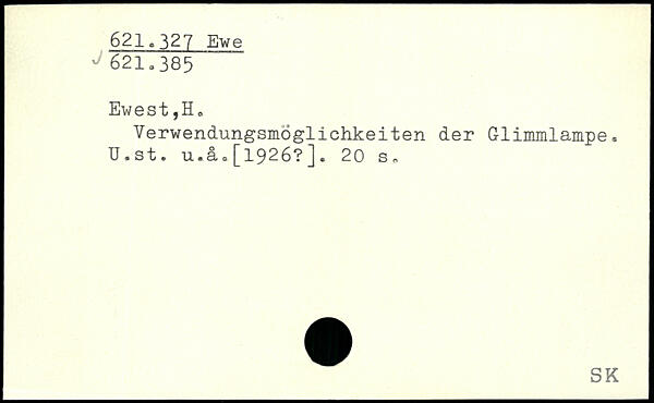 Verwendungsmöglichkeiten der Glimmlampe. U.st. u.ä.[1926?].