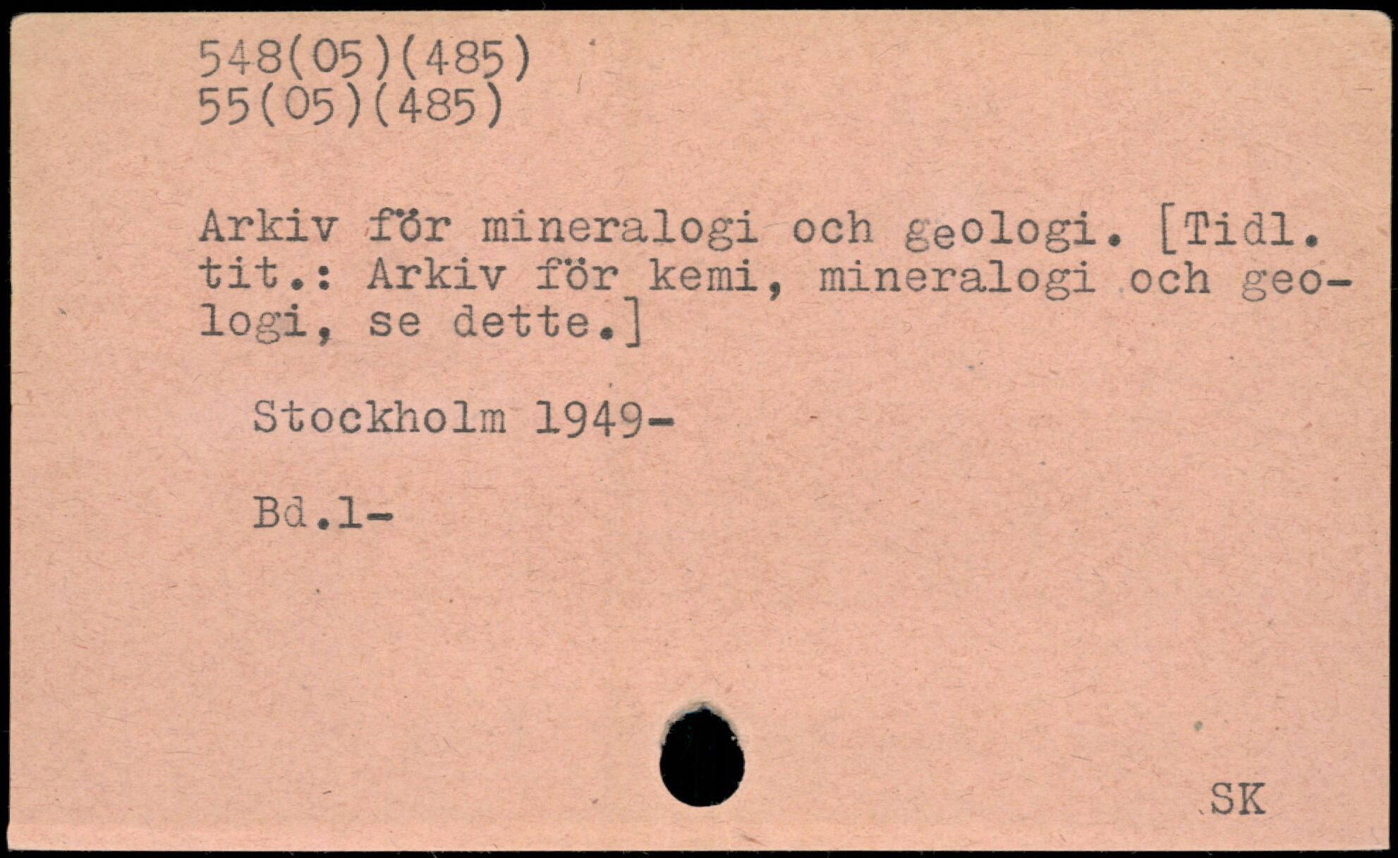 Arkiv för mineralogi och geologi. [Till, til.: Arkiv f.ör kemi, mineralogi och geologi, se dette.]
