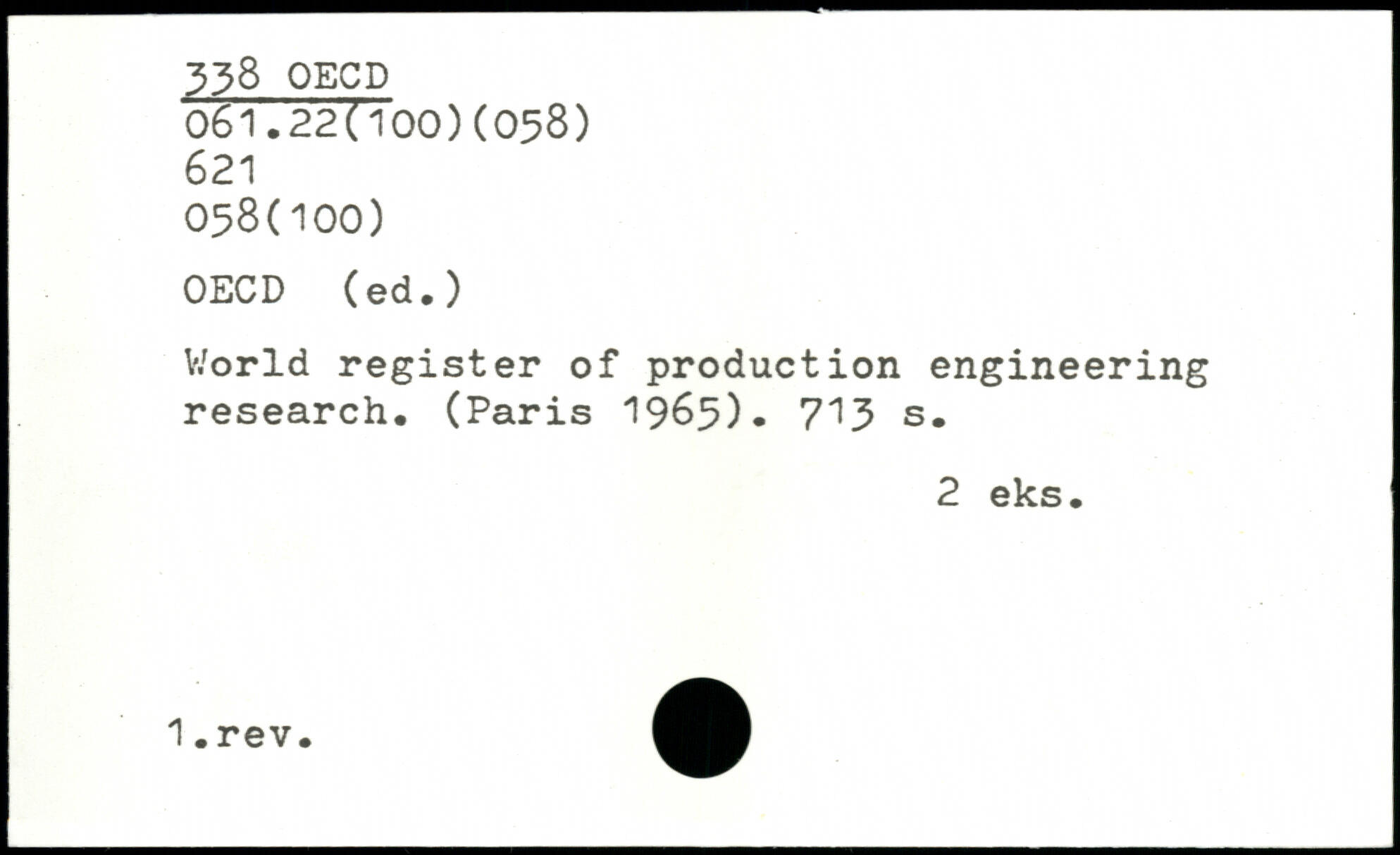 World register of production engineering research, (