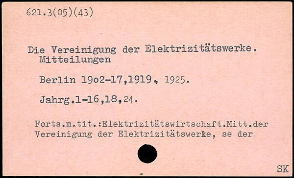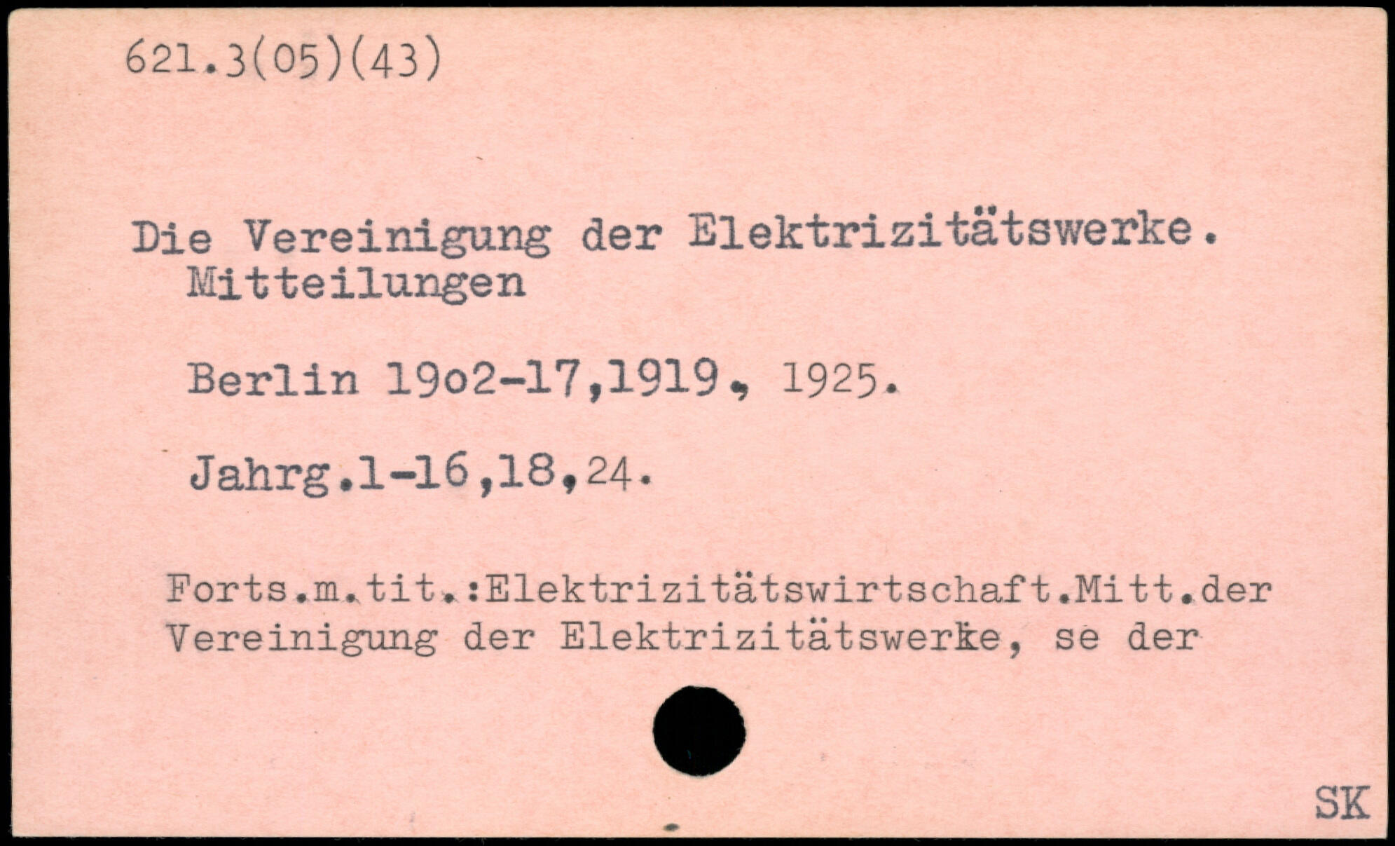 Die Vereinigung der Elektrizitätswerke. Mitteilungen Berlin 19o2-17,1919, 1925. Jahrg.1-16,18,24. Forts.nutit,:Elektrizitätswirtschaft.Mitt.der Vereinigung der Elektrizitätswerke, se der