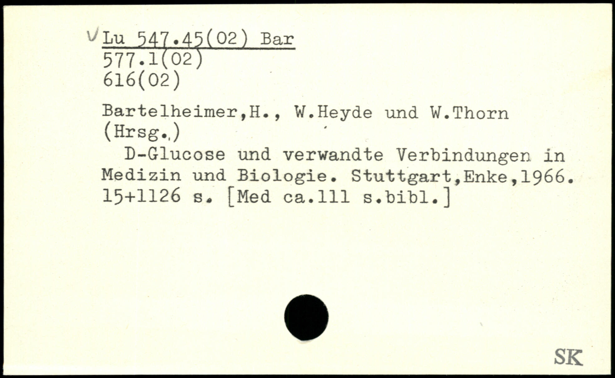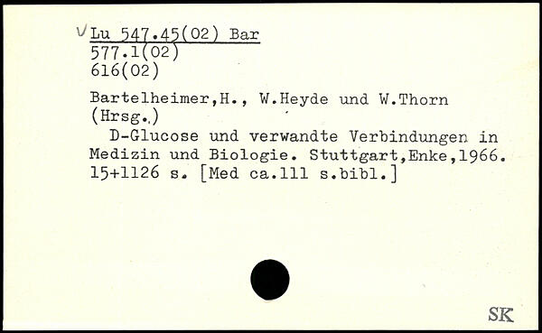 Bartelheimer,H., W.Heyde und W.Thorn (Hrsg.,) D-Glucose und verwandte Verbindungen in Medizin und Biologie.