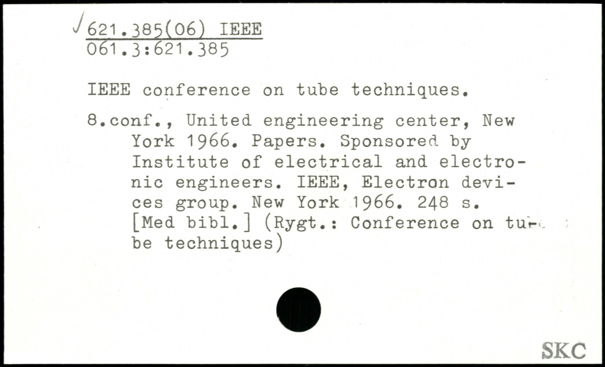 IEEE conference on tube techniques. 8.conf., United engineering center