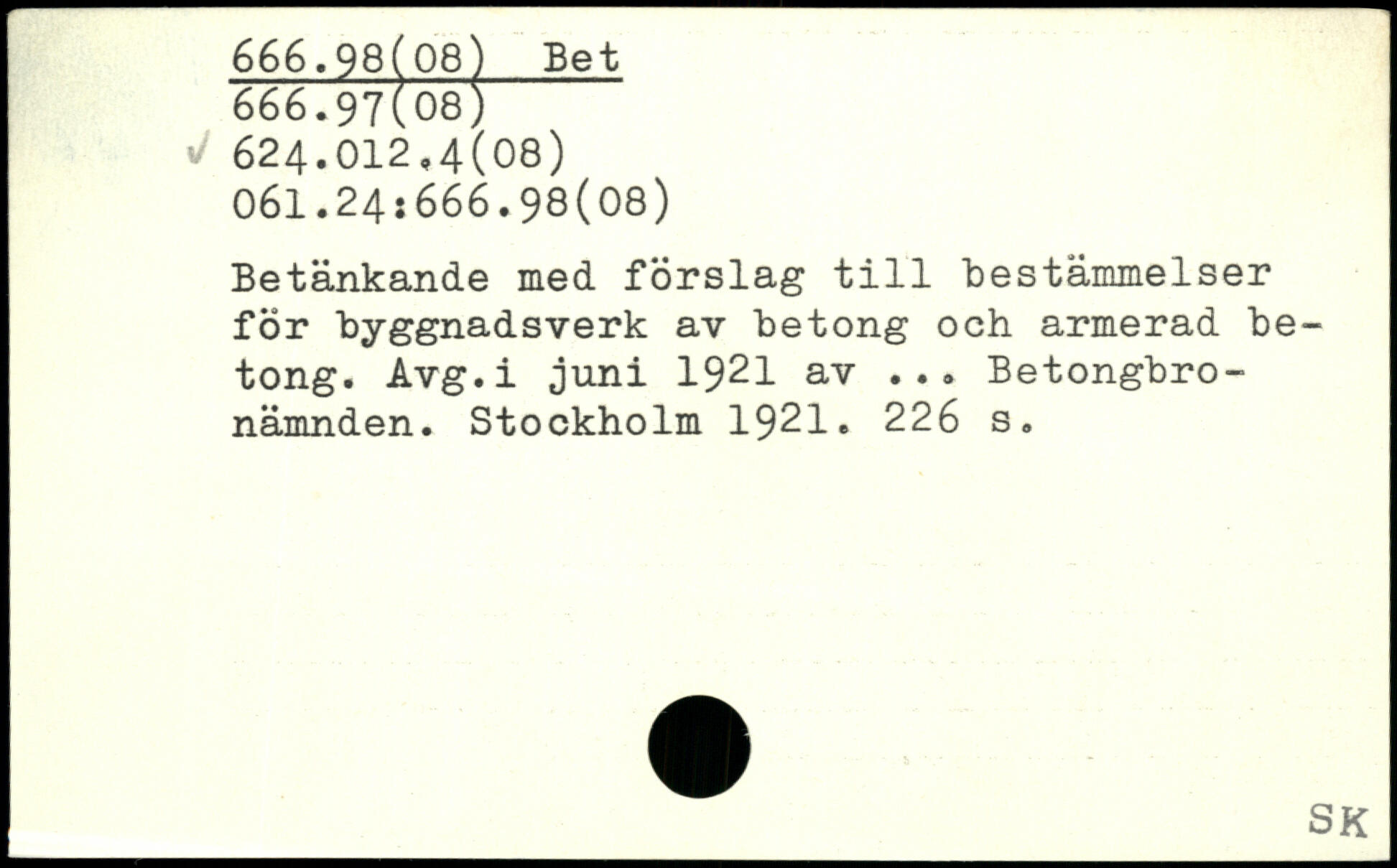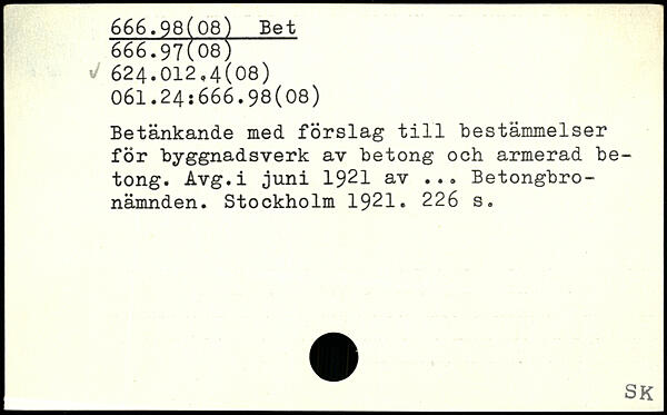 Betänkande med förslag till "bestämmelser för Byggnadsverk av betong och armerad betong. Avg.i juni 1921 av ... Betongbro-nämnden.