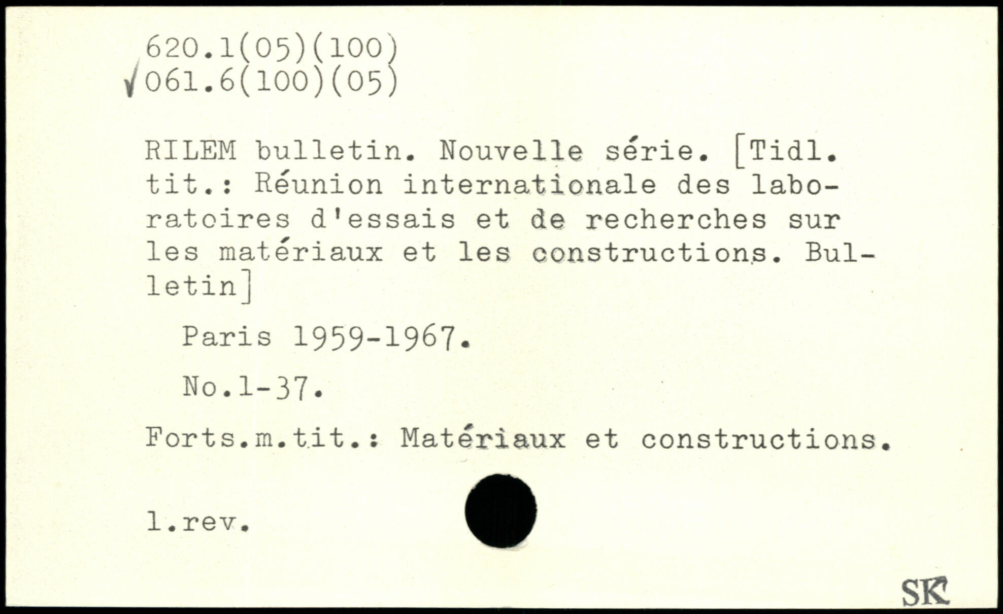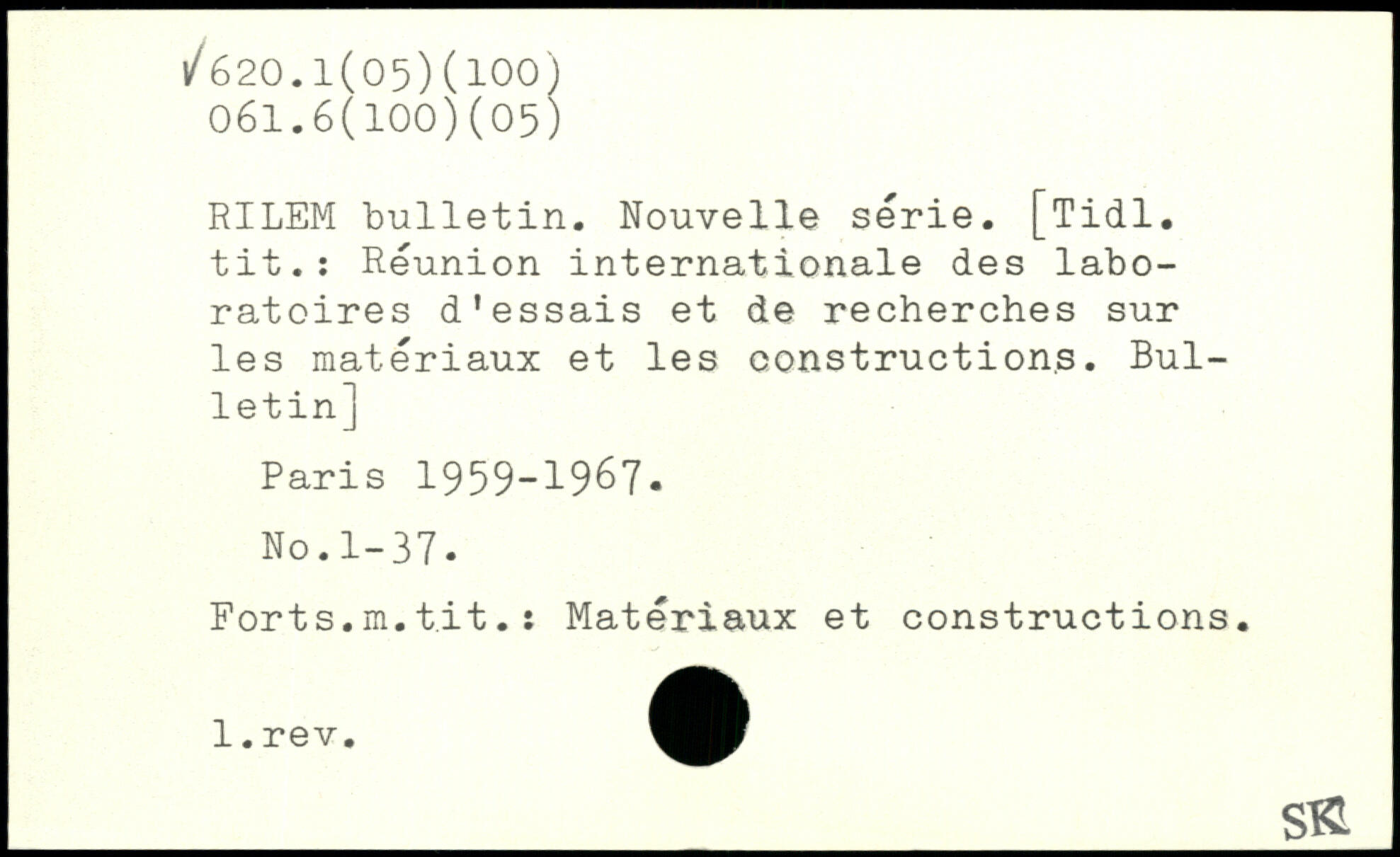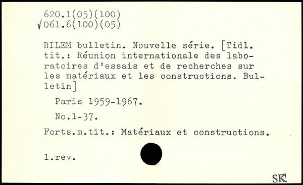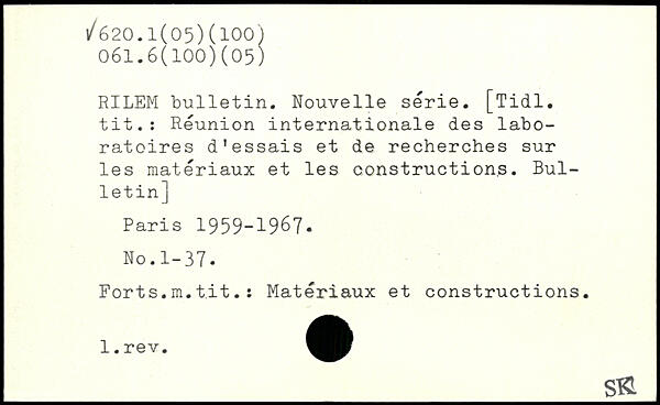 RILEM bulletin. Nouvelle série. [Tidl. tit.: Réunion internationale des laboratoires d'essais et de recherches sur les matériaux et les constructions. Bulletin]