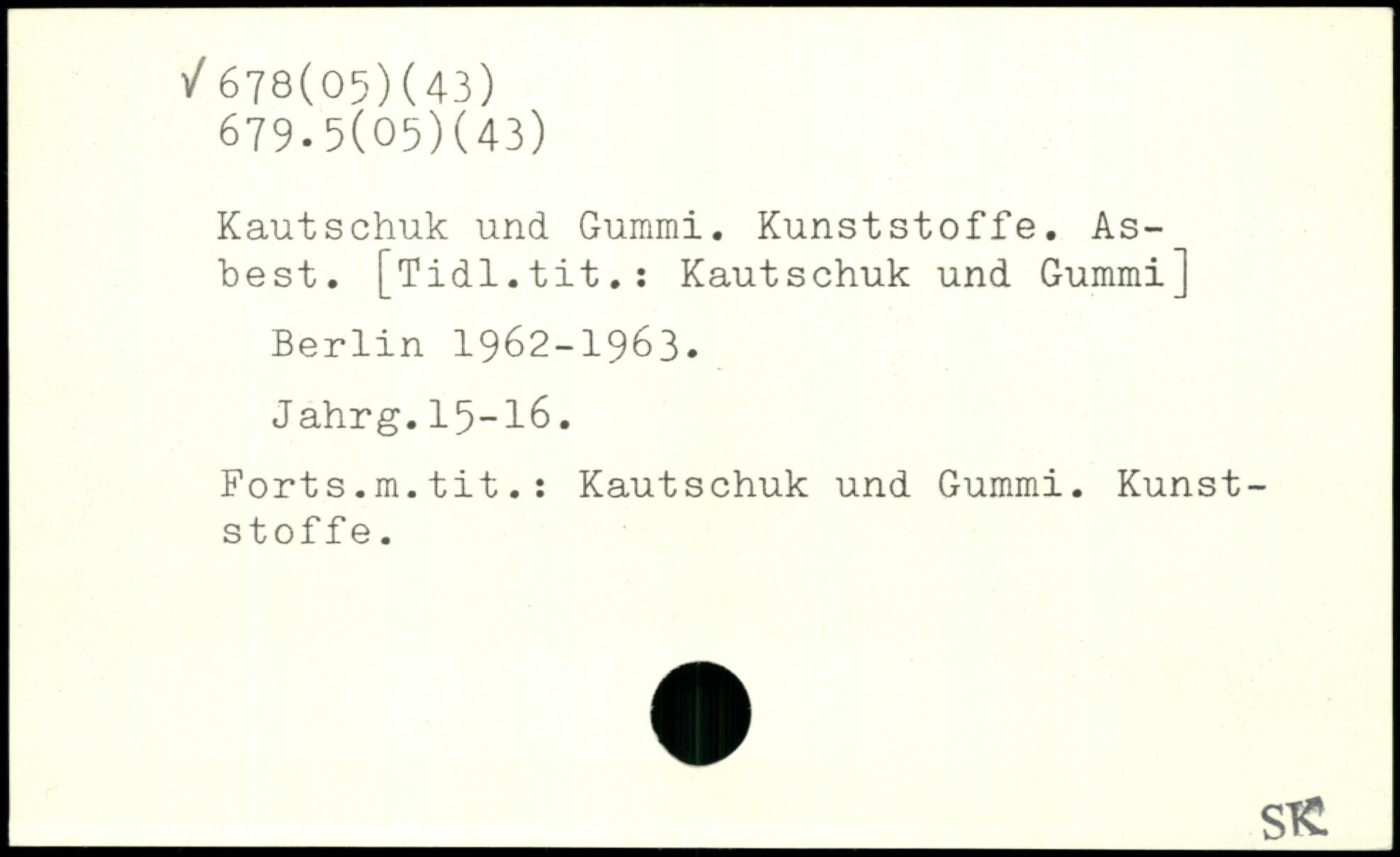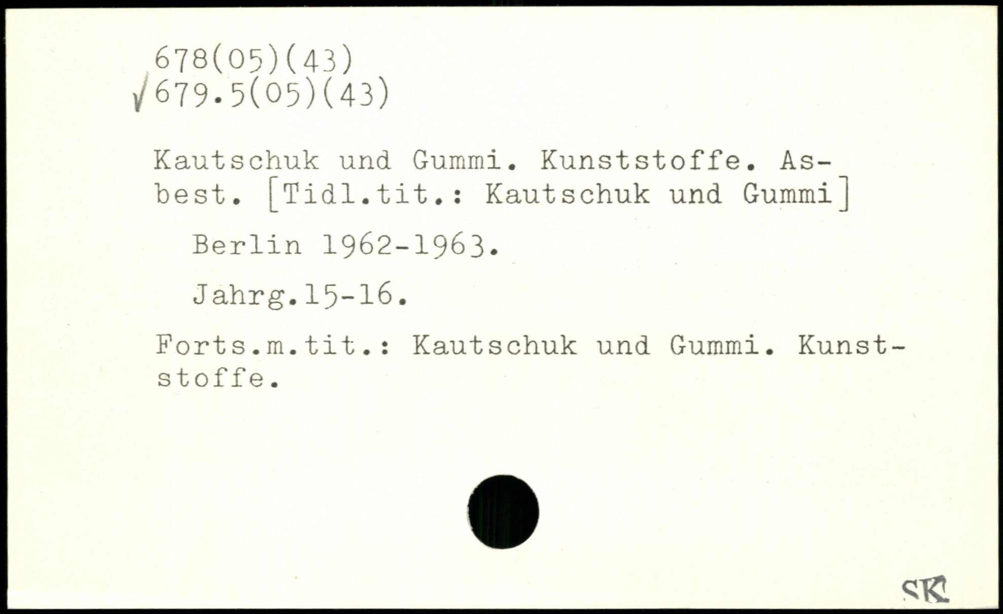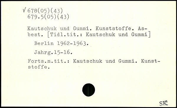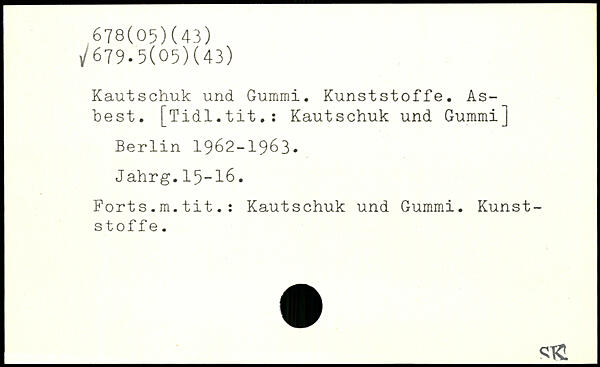 Kautschuk und Gummi. Kunststoffe. Asbest. [Tidl.tit.: Kautschuk und Gummi]