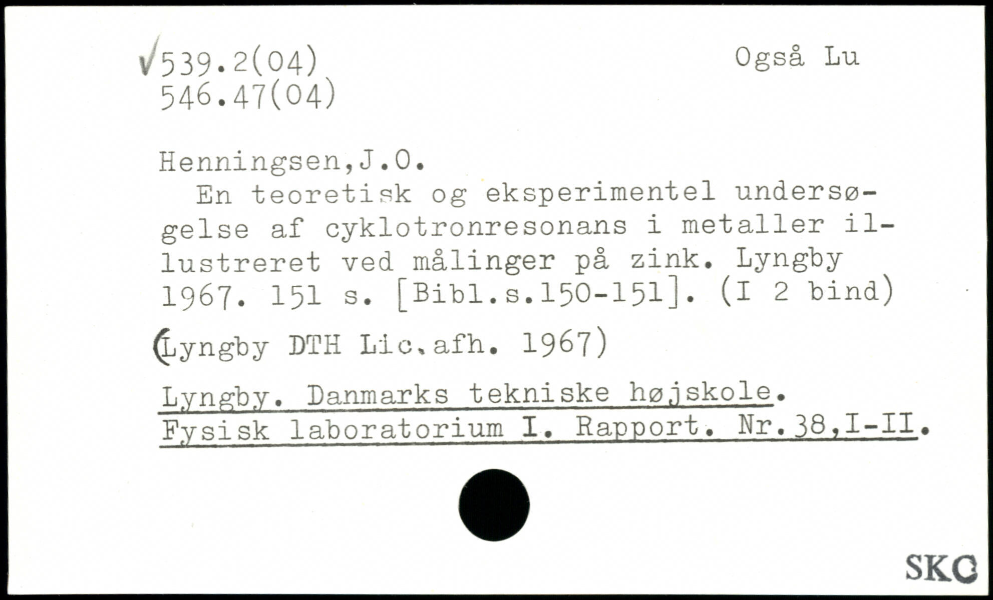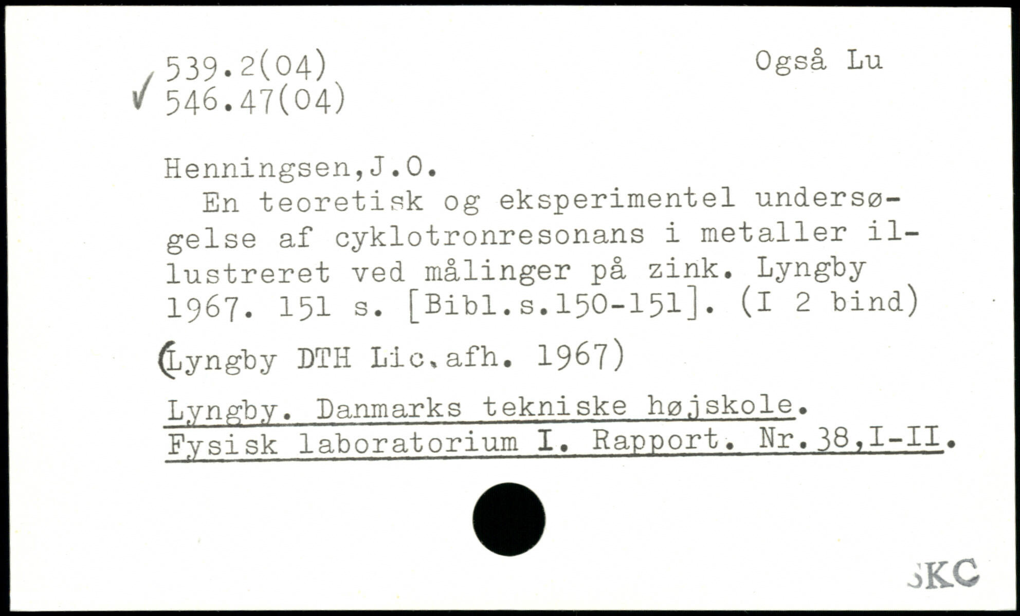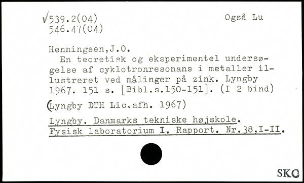 En teoretisk og eksperimentel undersøgelse af cyklotronresonans i metaller illustreret ved målinger på zink. Lyngby 1967.