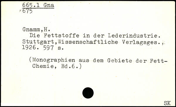 Die Fettstoffe in der Lederindustrie. Stuttgart /Wissenschaftliche Verlagsges., 1926.