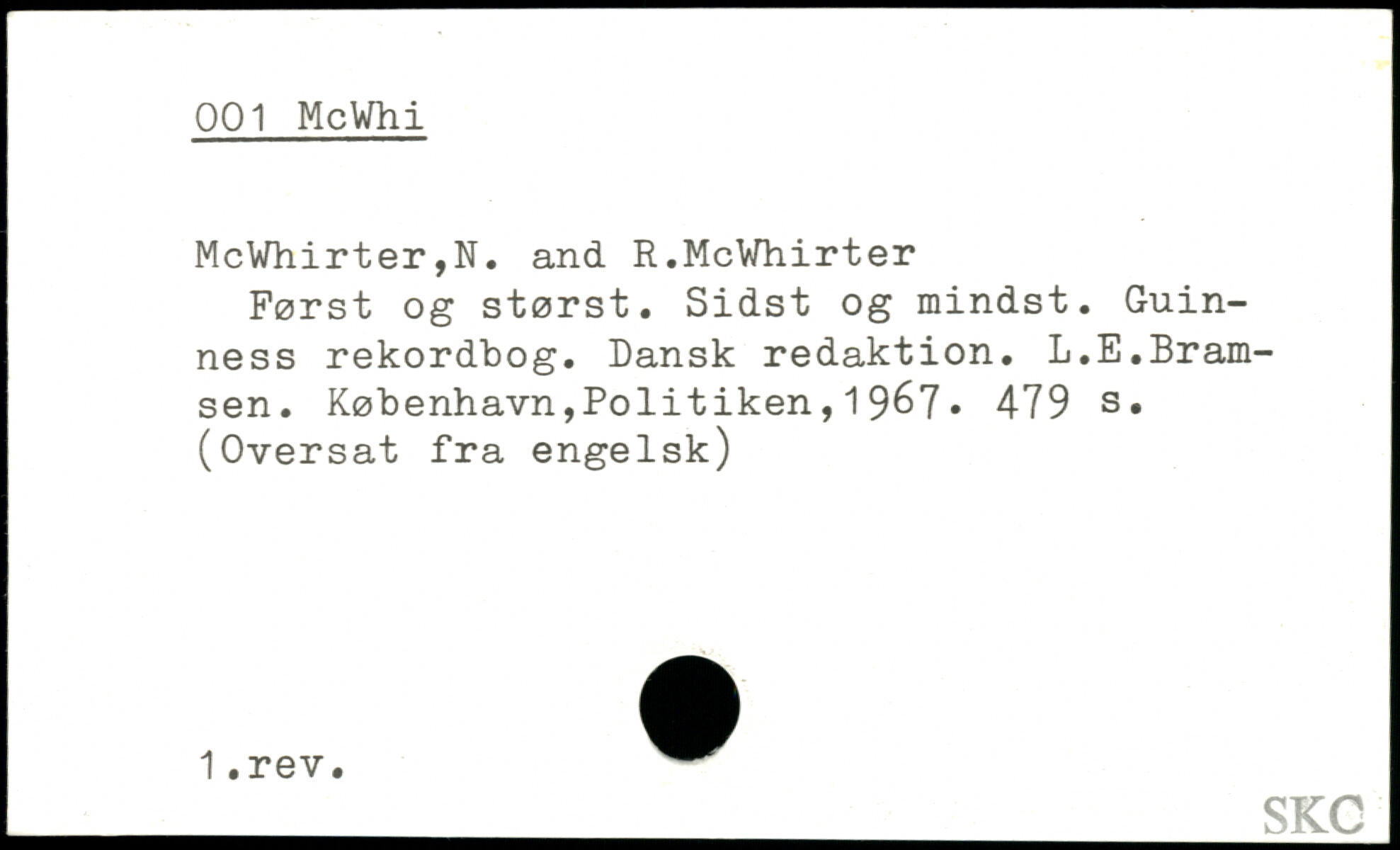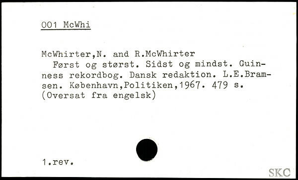 Først og størst. Sidst og mindst. Guin-ness rekordbog. Dansk redaktion. L.E.Bramsen.