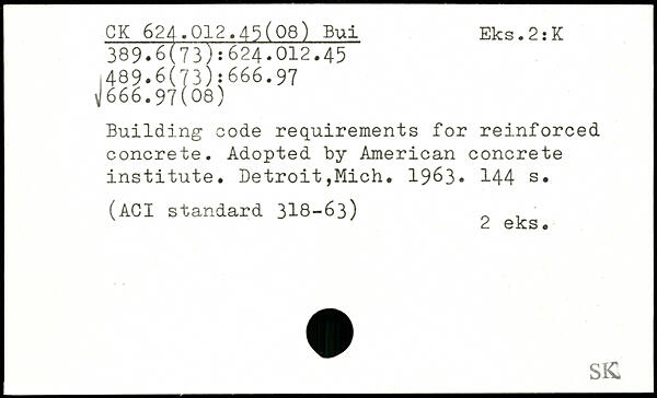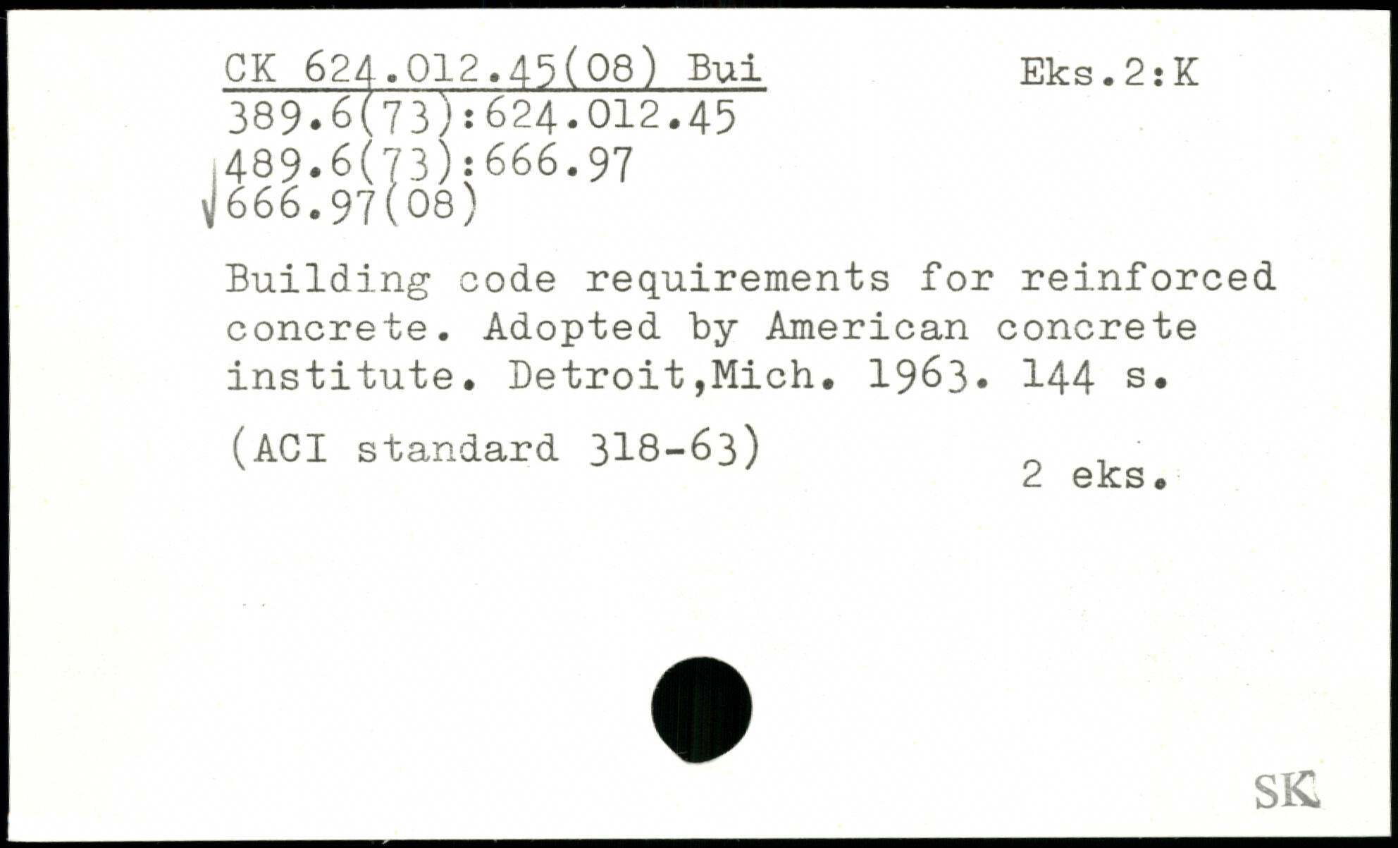 Building code requirements for reinforced concrete. Adopted by American concrete institute. Detroit,Mich. 1963.